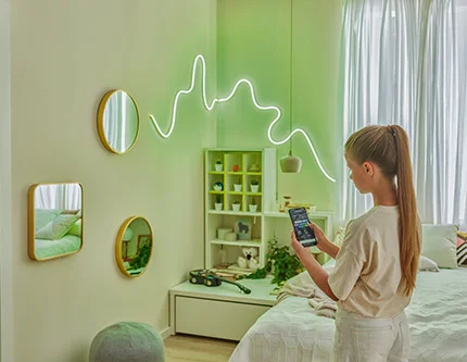 Oświetlenie wielobarwne to sprawdzony sposób na kreowanie atmosfery wnętrza. Dzięki możliwości sterowania barwą światła możemy sprawić, że przestrzeń wypełni się ciepłymi kolorami żółci, pomarańczy czy gorącej czerwieni lub wręcz przeciwnie, zyska chłodny wymiar za sprawą emisji światła w kolorze niebieskim lub zielonym. Tak elastyczne oświetlenie dobrze sprawdzi się w każdej domowej przestrzeni – od salonu i jadalni, przez kuchnię i łazienkę, aż po biuro, pokój gamingowy, sypialnię czy pokój dziecka.