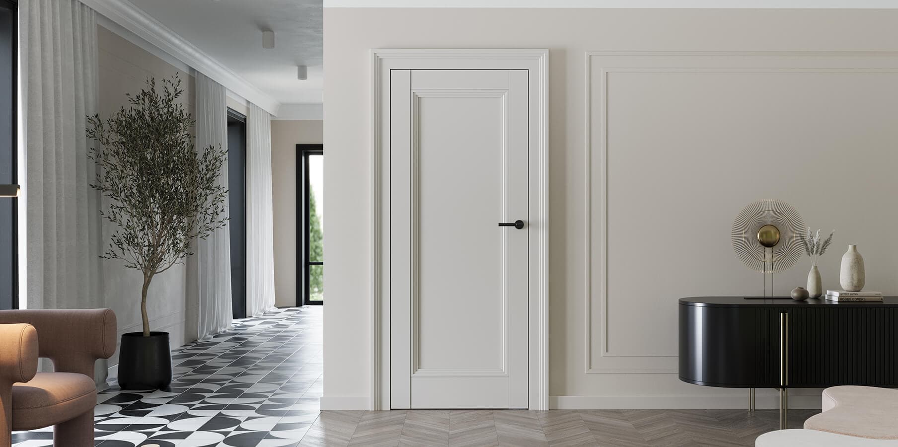 Dla przykładu drzwi wewnętrzne białe marki Porta to wybór ponadczasowy i bardzo uniwersalny. Dopasują się do wszystkich stylów wnętrzarskich i będą elastycznie poddawać się metamorfozom. Ponieważ biel dobrze odbija światło, drzwi Porta w takim kolorze optycznie rozświetlą przestrzeń i sprawią, że wyda się większa.
