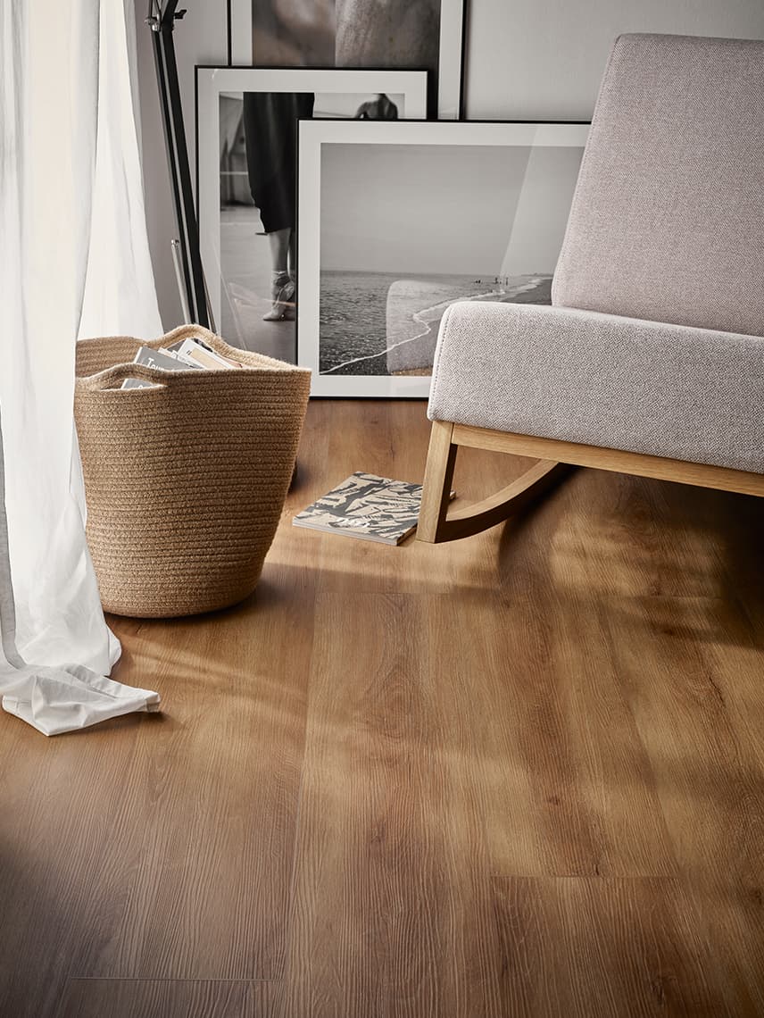 The same floor in the living room and bathroom? Now it is possible, because even direct contact with water does not alter the performance of Rigio vinyl floors. As an additional safety feature, the L2C locking system ensures a perfectly tight joint between the panels.