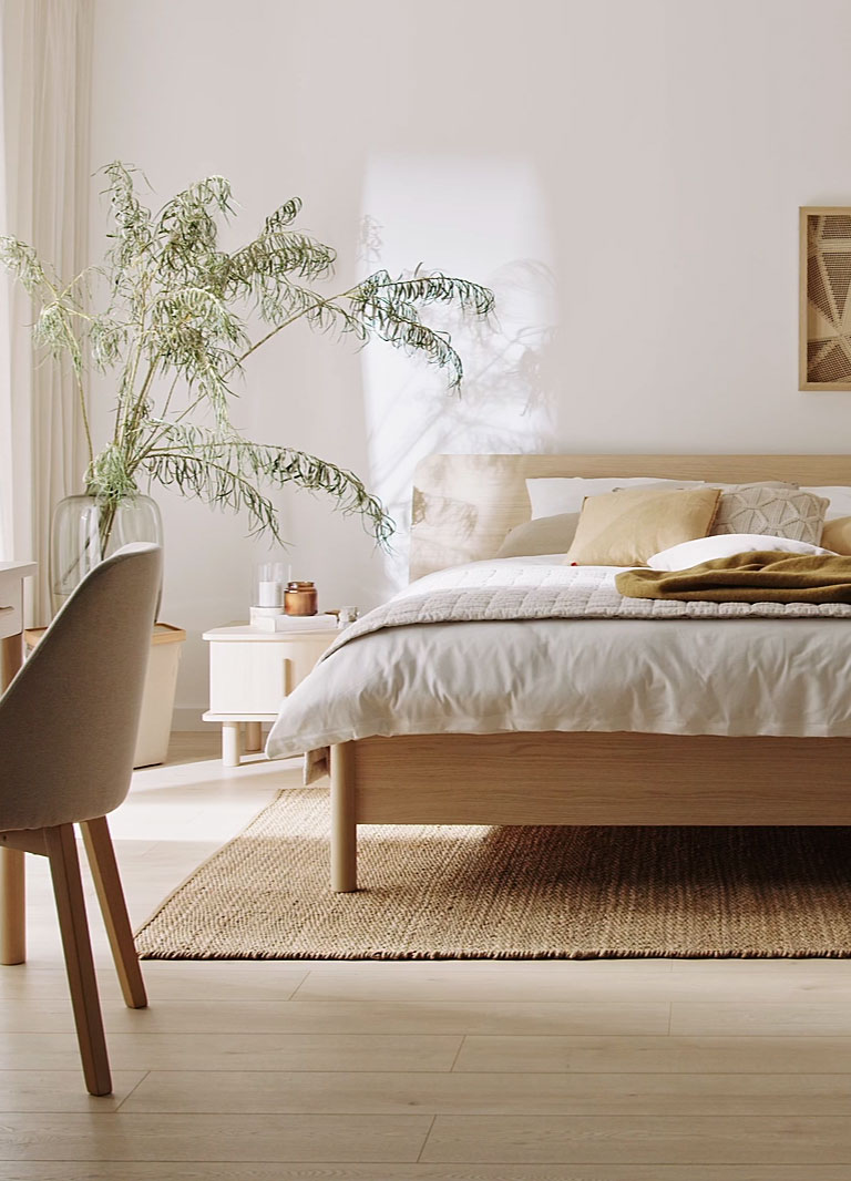 It is in the bedroom that we begin and end each day. Therefore, it is important that this space brings good energy and serenity. Every detail of OMM will help you take care of your well-being. Furniture from this collection: beds, wardrobes, chests of drawers, dressing tables, are calm forms with curved shapes, subtle wood grain and warm colours.