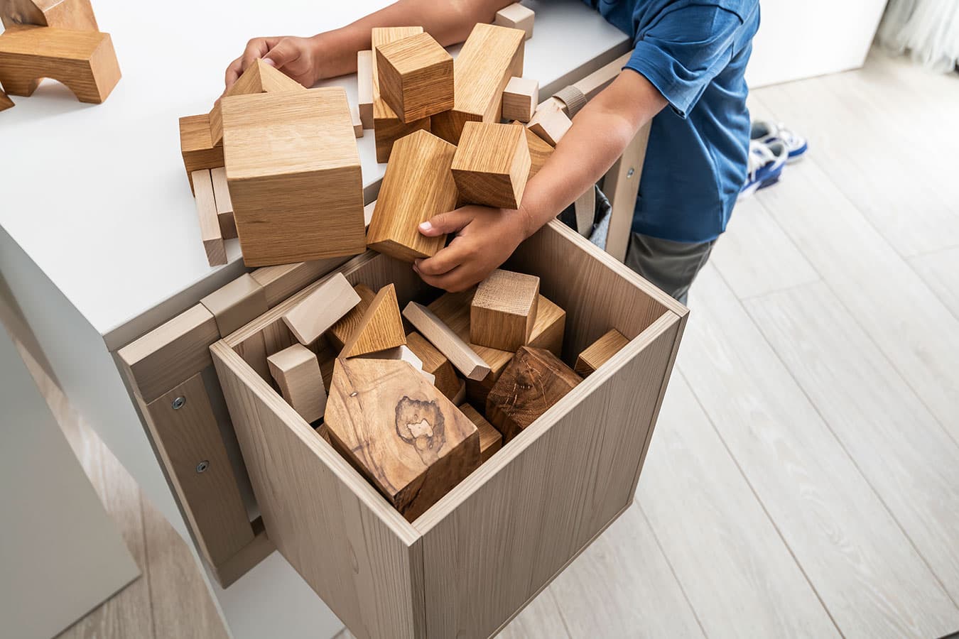 Combine the individual modules in any way you like: cabinets, shelves and platforms with capacious drawers - any combination will create an aesthetically pleasing whole. Adding open shelves will give the arrangement more lightness. Furniture in different colours allows you to create monochromatic compositions or more decisive colour mixes. As your child grows, you can completely change the arrangement.
