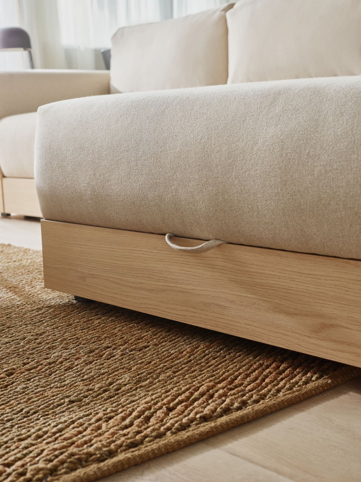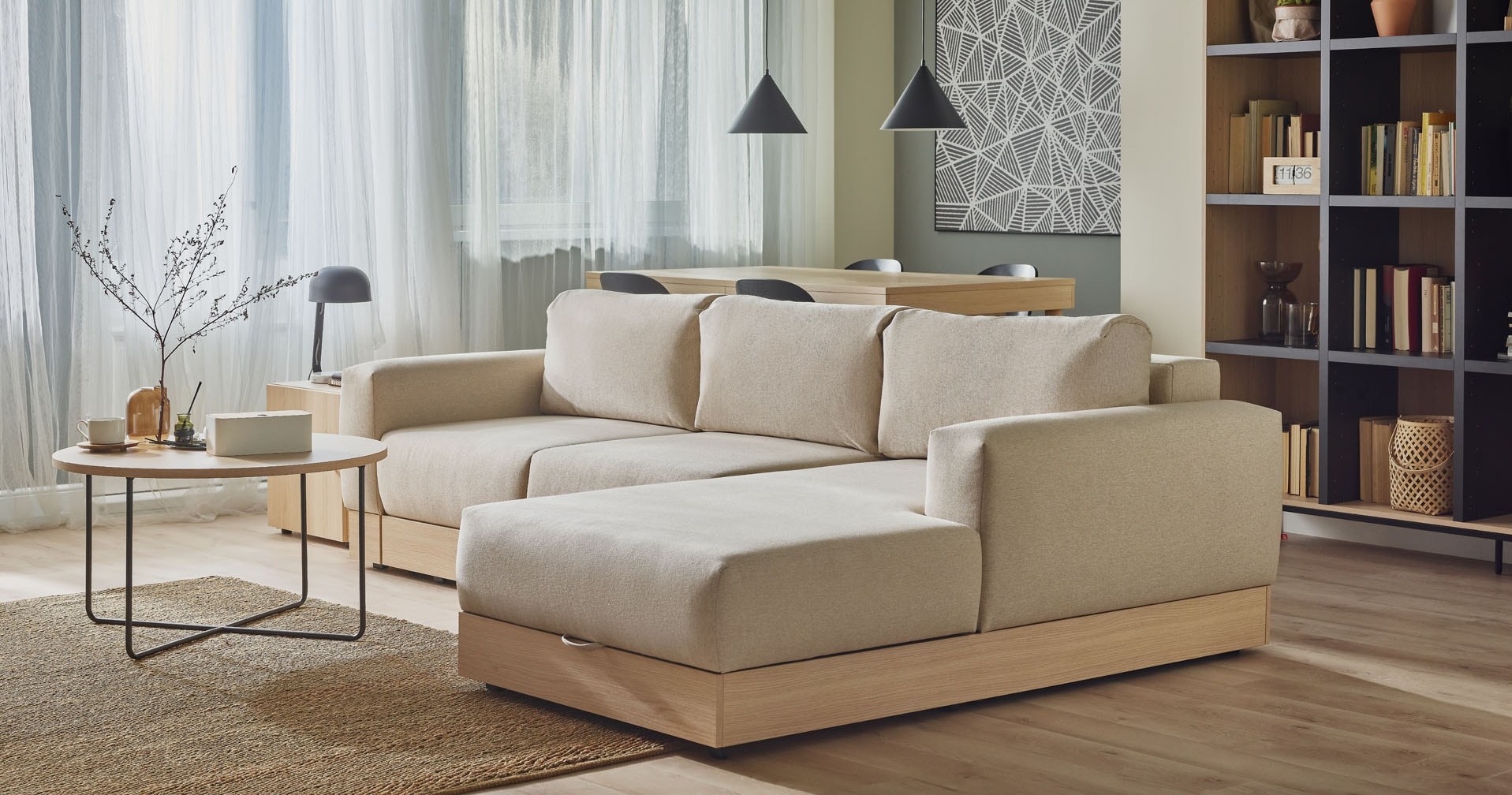 BEIGE SOFA AND WOOD - A WARM DUO