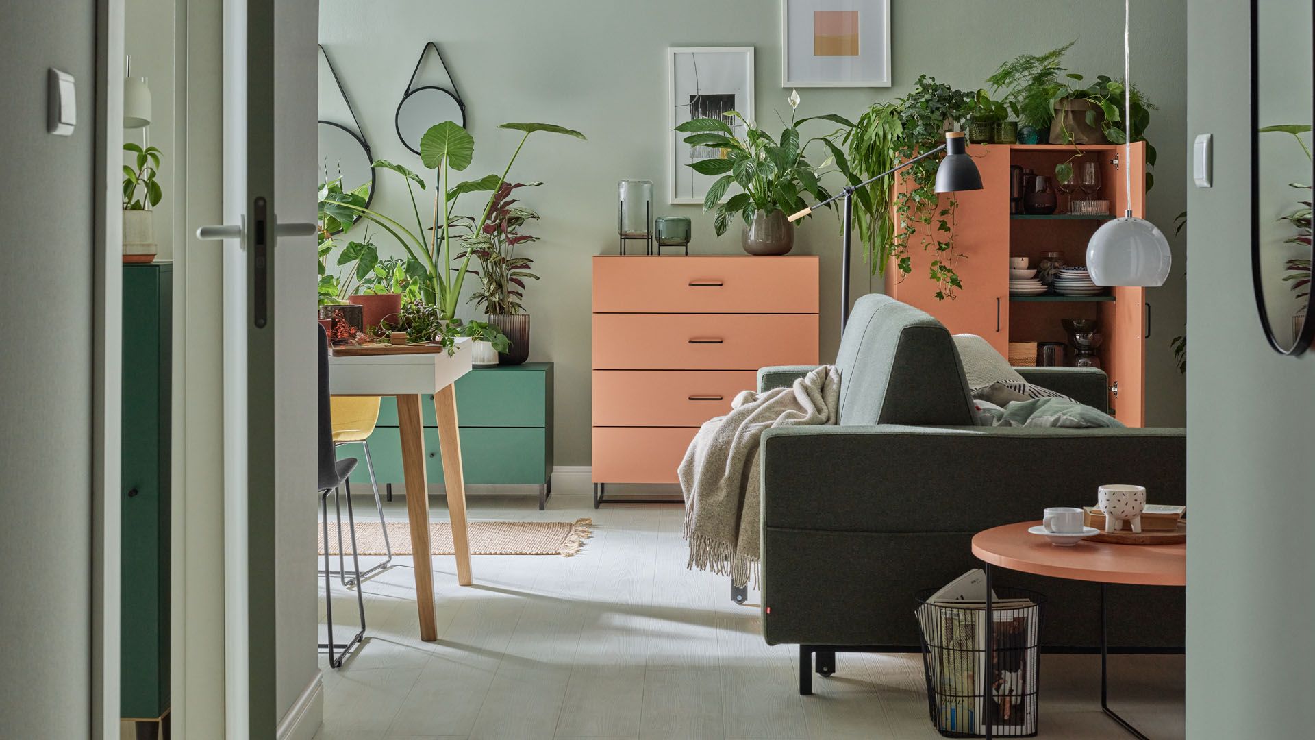 Our home office should also not be without a plant accent. Openwork bookcases or a desk with a ladder work well there, with the help of which we can arrange a green curtain in the interior. After all, ivy is known for its ability to quickly wrap itself around adjacent surfaces - which is why it has become part of wedding ceremonies in Greece, where it is presented to the bride and groom as a symbol of fidelity. It doesn't need any special help to do so: all you have to do is gently direct the vines towards the frame or tiers. It is particularly easy to turn a Worknest desk into a dense screen by hanging ivy on it in a metal container.