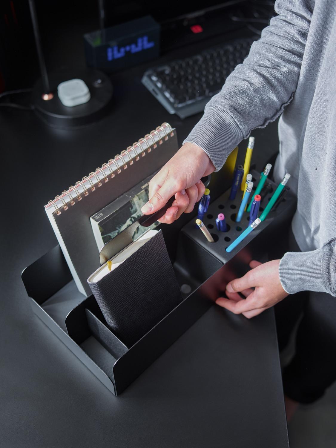 Gadgets for the gamer's room are not just figurines or records. Inherent in this creative passion are pads, chargers, headphones and other small items that are easy to lose. It is a good idea to organise all these items properly by placing them on a functional display. The double-sided organiser can find its place on a desk or open shelf, keeping frequently used items within easy reach.