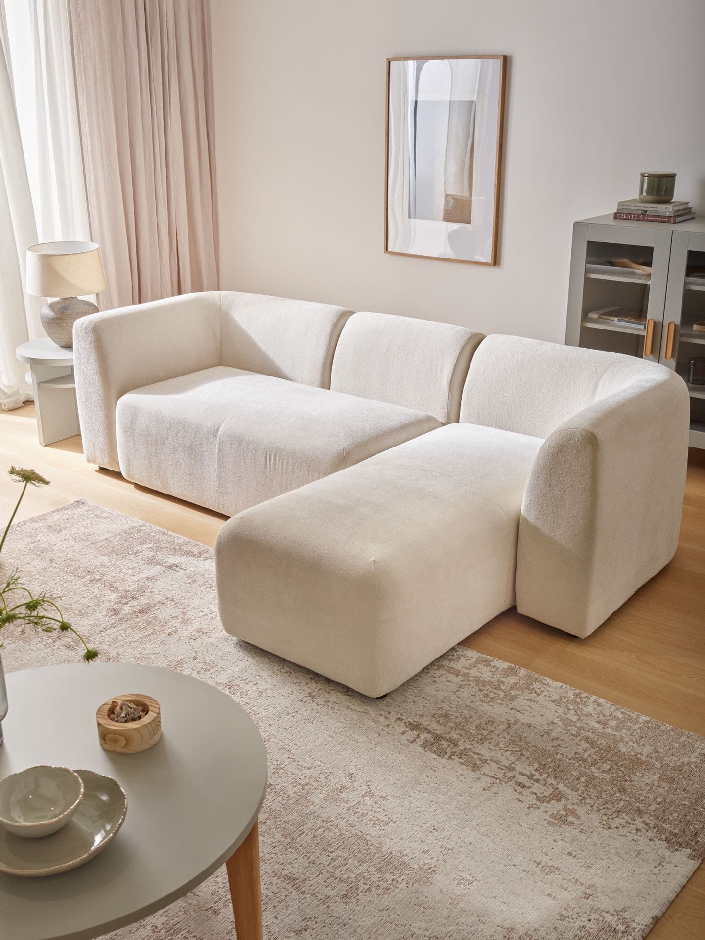A cohesive décor in soft colours will make even a small living room appear more spacious. This creates the perfect backdrop for accessories such as plants, textiles and decorations, which can be easily changed according to season or mood.