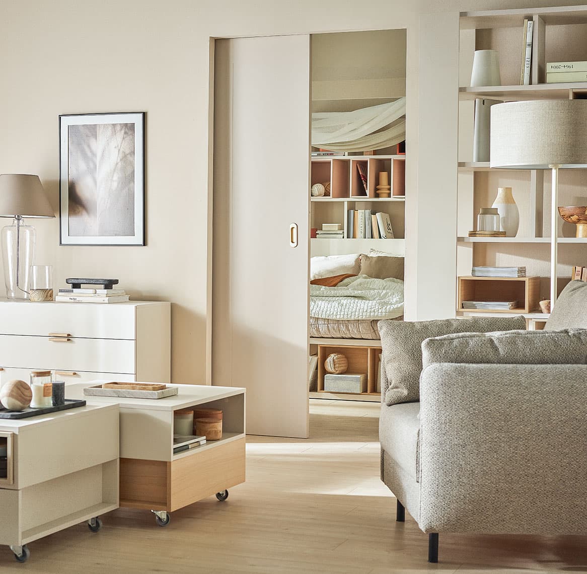 One of the most fashionable trends is to match the door to the wall. This gives the effect of a concealed door that blends harmoniously into the space. The Gio doors in our range are undercoated, allowing you to paint or wallpaper them yourself. By choosing this model, you can create a door that perfectly matches your décor. Thanks to the concealed frame and rebate-free design, they can be flush with the wall and remain almost invisible.