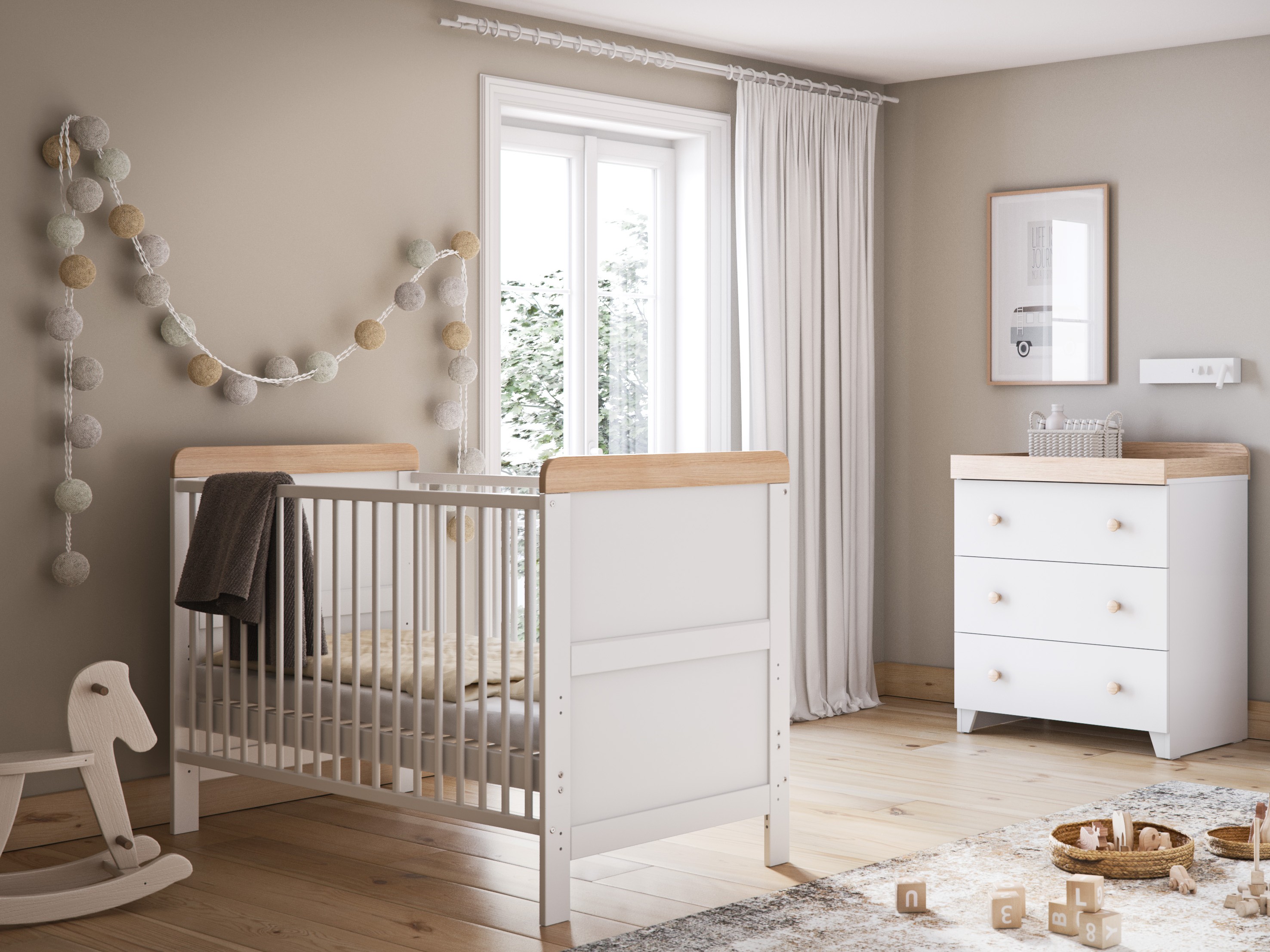 Even the most classic furniture, however, can have a few extra features to make the daily care of the baby a little easier. A cot with a roomy drawer will certainly come in handy for parents. The extra space is just right for a supply of nappies and clothes, which will always be within easy reach. When choosing a cot for a small bedroom, it is also worth considering a model with a drop-side. The sleeping area for the baby can then be easily attached to the parents' bed so that the little one is close to us. This will make night-time breastfeeding much easier and help us build a bond with the baby.