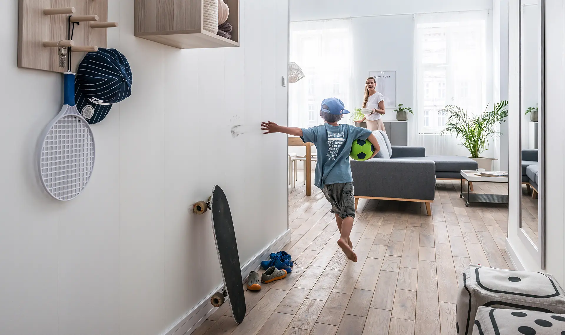 Walls also play an important role in determining the attractiveness of an apartment. They are increasingly expected to be more than just a neutral background. They can be decorative and at the same time surprising in their functionality. In rooms where walls are exposed to damage or splashing, it is advisable to install Kerradeco decorative panels. They are durable, impact-resistant and moisture-resistant, and can be used to create an individual atmosphere. If you choose a traditional paint, make sure it is stain-resistant, i.e. can be cleaned wet.