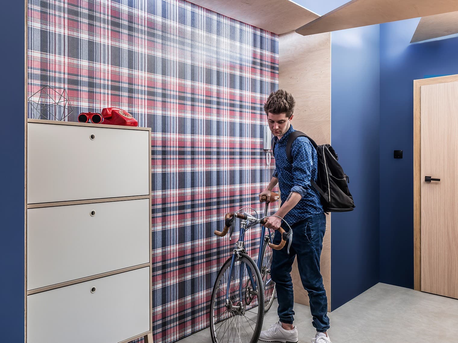 However, it is worth bearing in mind that the entrance hall is an interior that is particularly vulnerable to moisture and dirt brought in from outside. Kerradeco laminate is ideal for this, as its surface is durable and easy to clean. It can easily withstand muddy shoes, wet hair or a bicycle leaning against the wall. The panels can be easily matched to your own ideas for hallway design, choosing from over a dozen designs: from smooth white, through modern concrete, to traditional wood.
