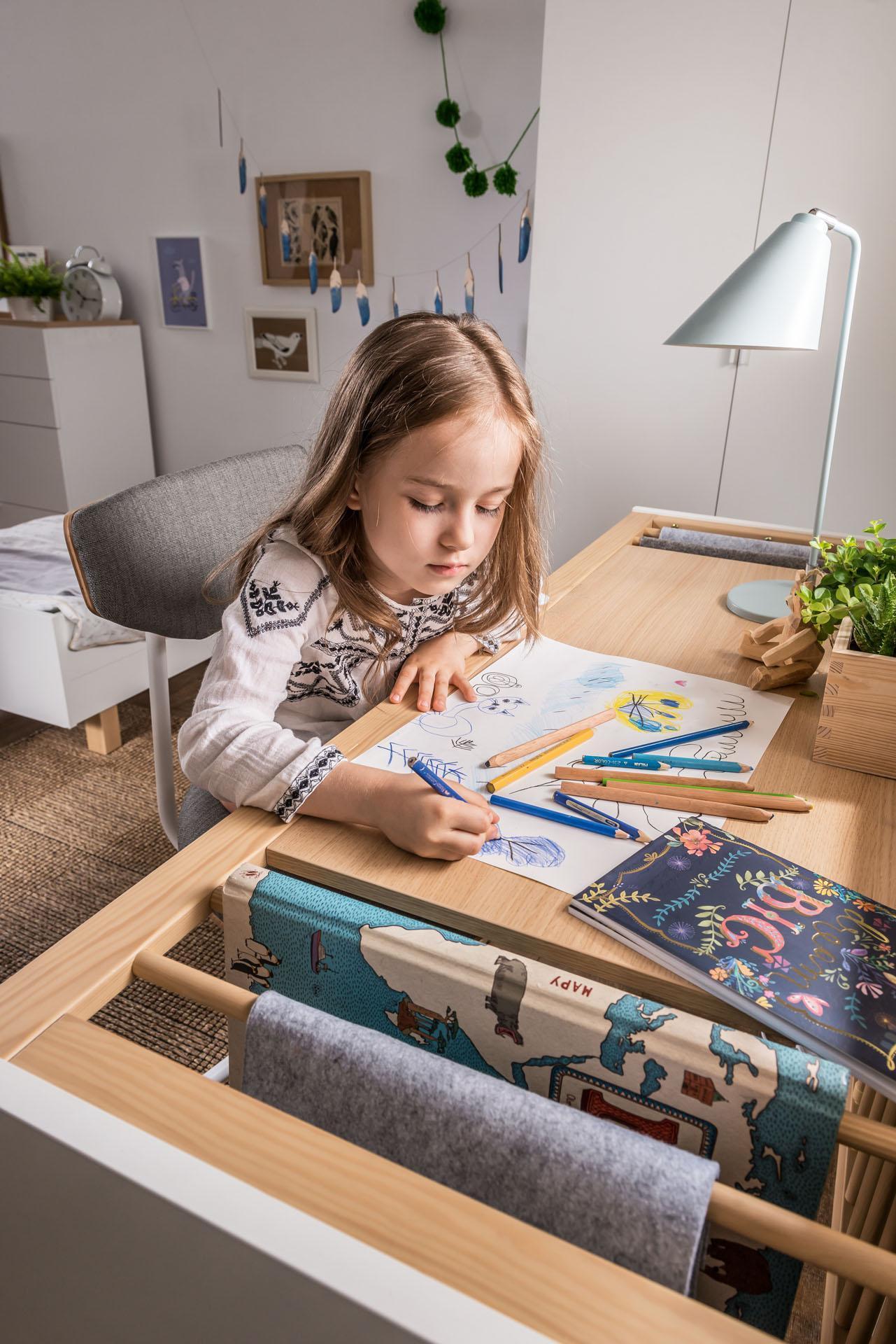 Even several-year-olds spend a lot of time at their desks. The pupil's room should therefore be equipped with comfortable furniture that will help the child maintain the correct posture while studying. Lighting also plays a huge role here, with the task of evenly illuminating the entire table surface.