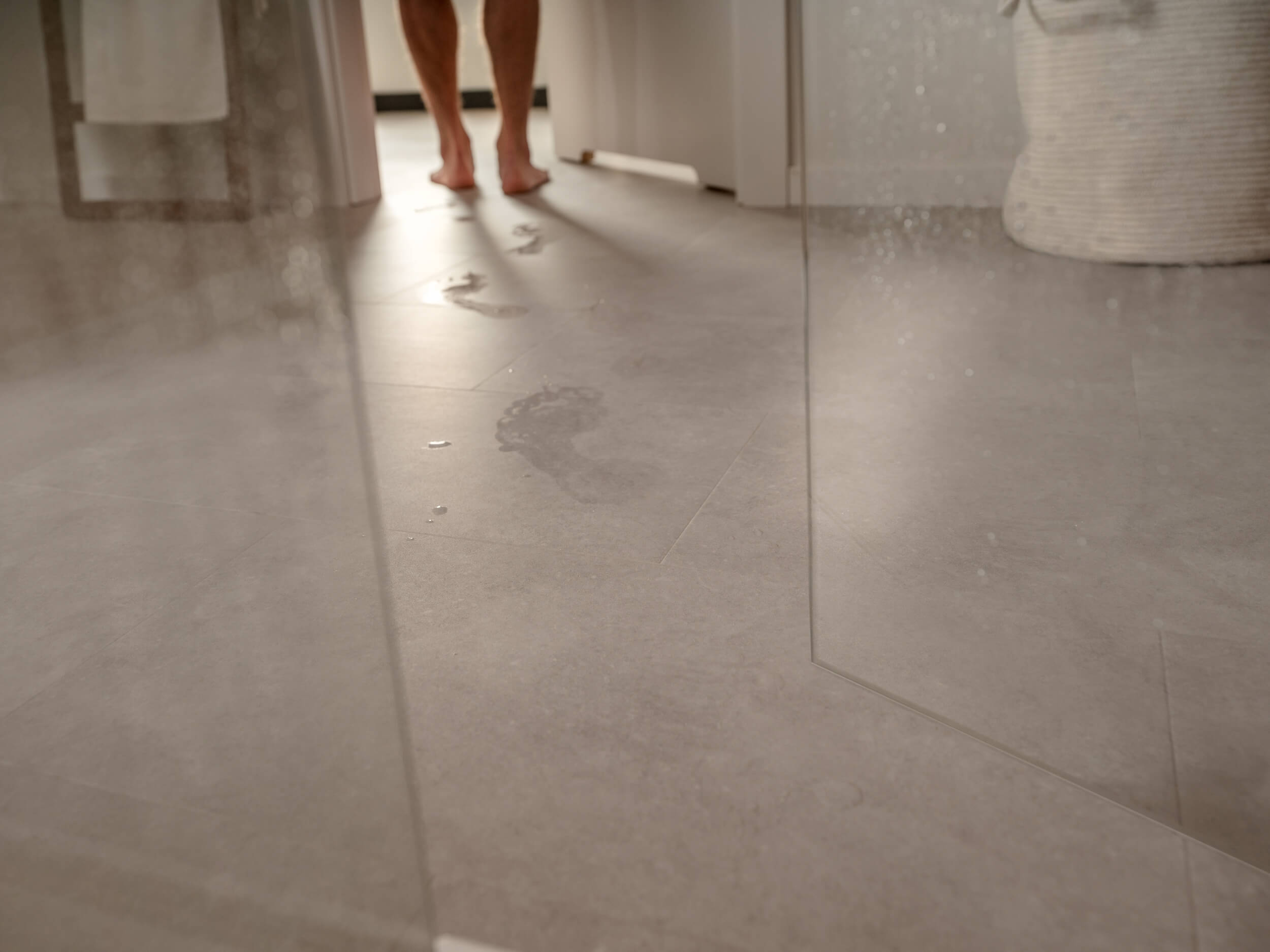 Panels can be waterproof or water-resistant. The former protect the floor from absorbing moisture over a 24-hour period, thanks to the hydrophobic layer and the tightness of the locks. The latter, on the other hand, are made of a material that does not swell when it comes into contact with water. The impermeable zips are additionally treated with wax to prevent condensation from entering. So we can enjoy a relaxing shower without worrying about bulging surfaces. Direct contact with spilt water will not affect the performance of the floor, which is confirmed by the long-term guarantee. However, the panels cannot be installed in the shower itself.