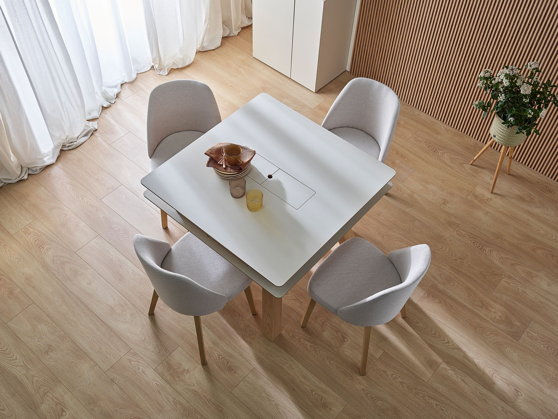 A light floor is extremely versatile. It can add light and space to smaller interiors and help make larger ones feel lighter and cosier. When we appropriately match the shade of the floor to the colour of the walls, doors, skirting boards and furniture finishing, we can easily create an arrangement full of harmony, avoiding boredom.
