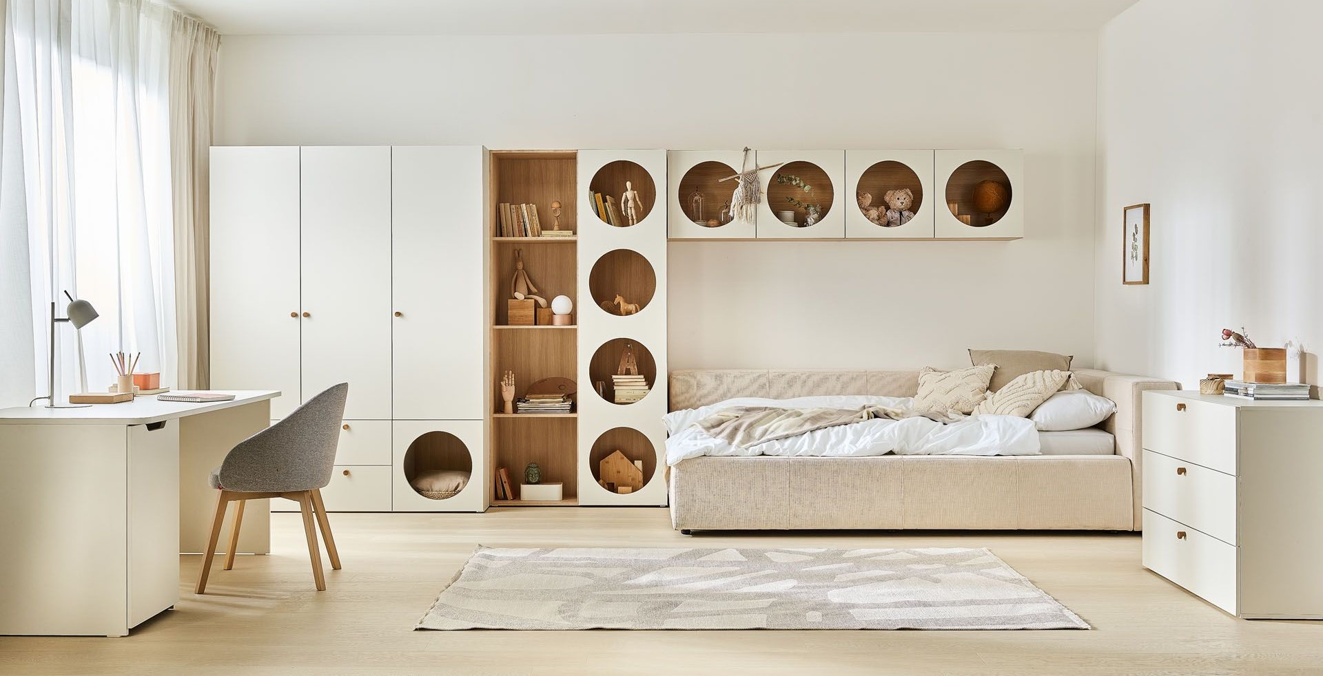 If you are furnishing a bedroom for a child of several years or a room for a teenager, you may want to think about slightly more robust solutions. This is where you'll find the hard-wearing Rigio floors, which, thanks to their tough mineral fibre core, can take a lot. The youngest inhabitants can easily play toy races, bounce a ball or put up stickers. If you want to install the children's room in a room right above the living room or the neighbours' bedroom, you can also consider a light-coloured vinyl floor. It will also effectively muffle the sound of footsteps, especially when paired with the right underlay.