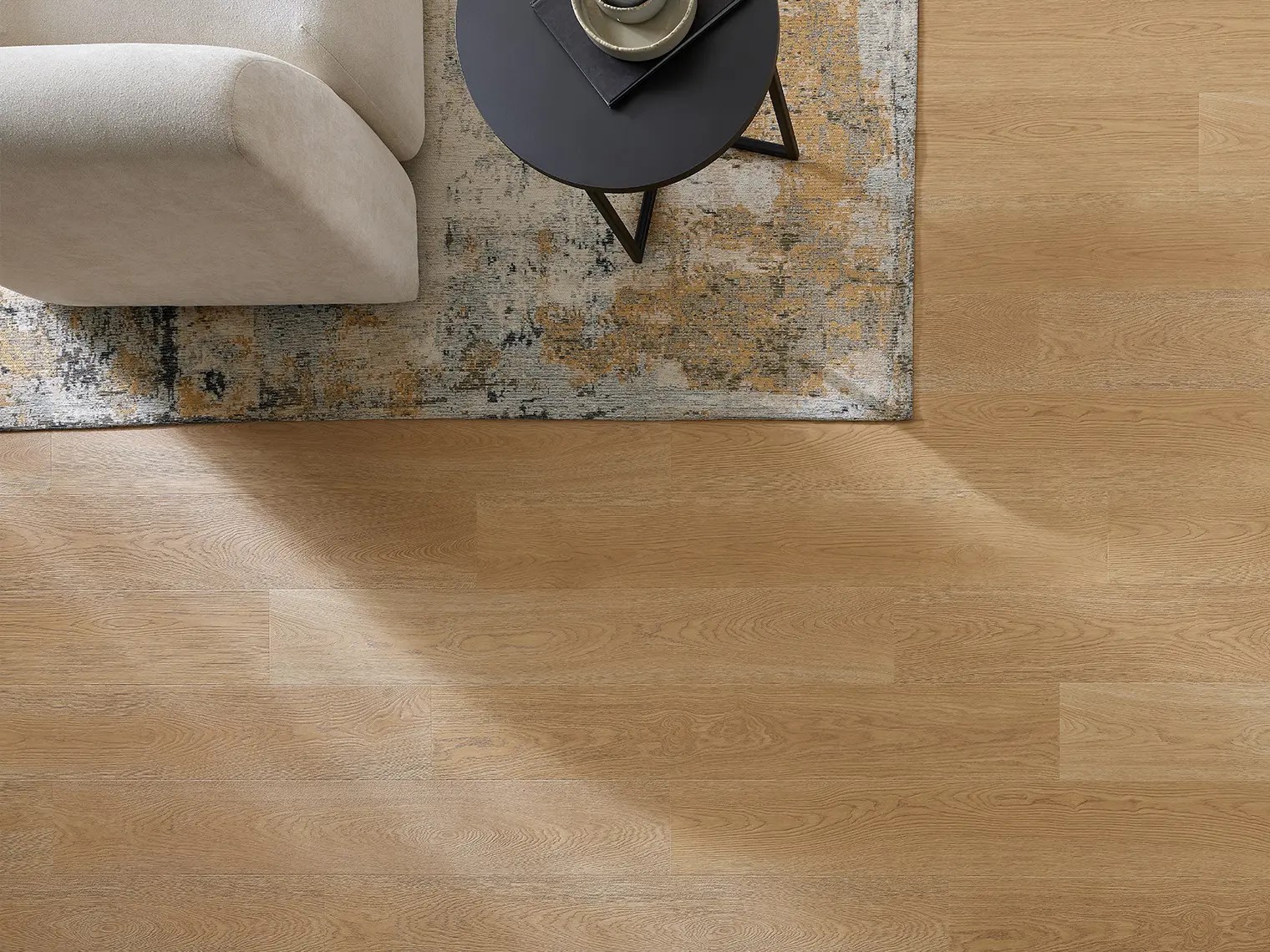 The living room is a room with a lot going on all the time. A light shade of flooring is far more effective than a dark shade in disguising fine scratches or minor damage that occurs on a daily basis. What's more, natural wear and tear can add character to the interior.