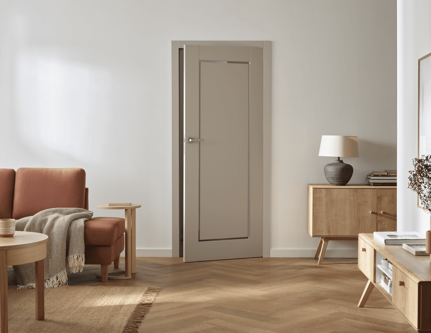 Noma or Fina door leaves, which are made in timeless shades of grey and beige, are an elegant complement to the design. Triple-painted with ecological UV-hardened paint, they have an exceptionally durable colour, which does not fade when exposed to the sun. The hardened surface is also easy to clean and resistant to scratches from pet claws, which is why such a colourful room door can also be confidently chosen by pet owners.