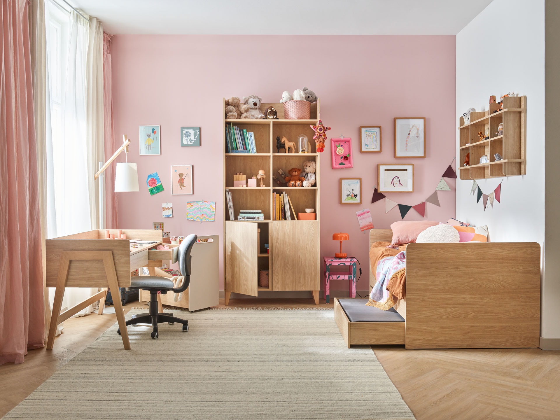 The colours of the walls, furniture and accessories in a child's room can add energy or, on the contrary, have an overwhelming effect and a negative mood. It is useful to know the basics of colour psychology when arranging, but no less important are your daughter's personal tastes. When it comes to decoration and accessories, current fascinations can play a key role - all the more so as these elements can easily be replaced when a girl's style or interests change. This will not only give the room a welcoming feel, but also make it more "her".