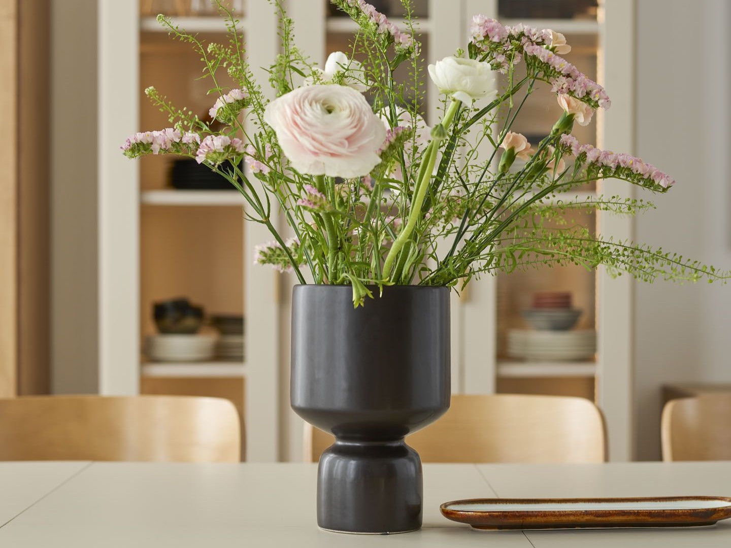 Cut flowers placed in glass vases can also be placed on windowsills or table tops as spring decorations. They will add a stimulating freshness to the interior and, during the day, will additionally brighten it by reflecting the rays of the spring sun. Lightweight, transparent An vases or decorative tinted glass vessels with an unconventional shape, such as the Bruni vase in an elegant shade of smoky brown or the gently fluted Flora vase, will complement our arrangements.