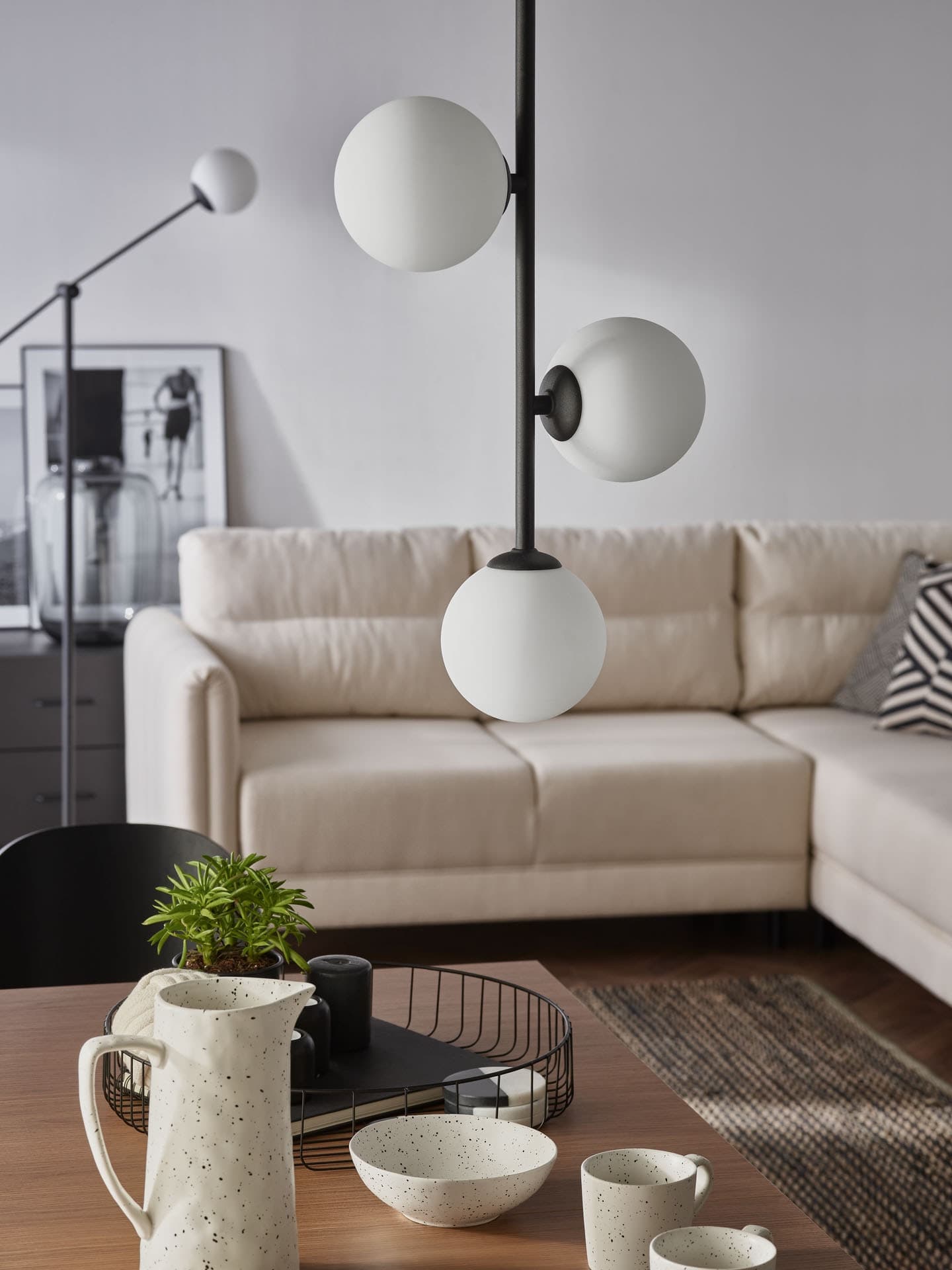 In the case of coffee tables, these values are slightly lower - usually the appropriate hanging height for a lamp is 50-70 cm above the table top. However, it is worth remembering that the final decision depends on many factors: the type and function of the lamp, the height of the ceiling, the size of the room and the effect you want to achieve.