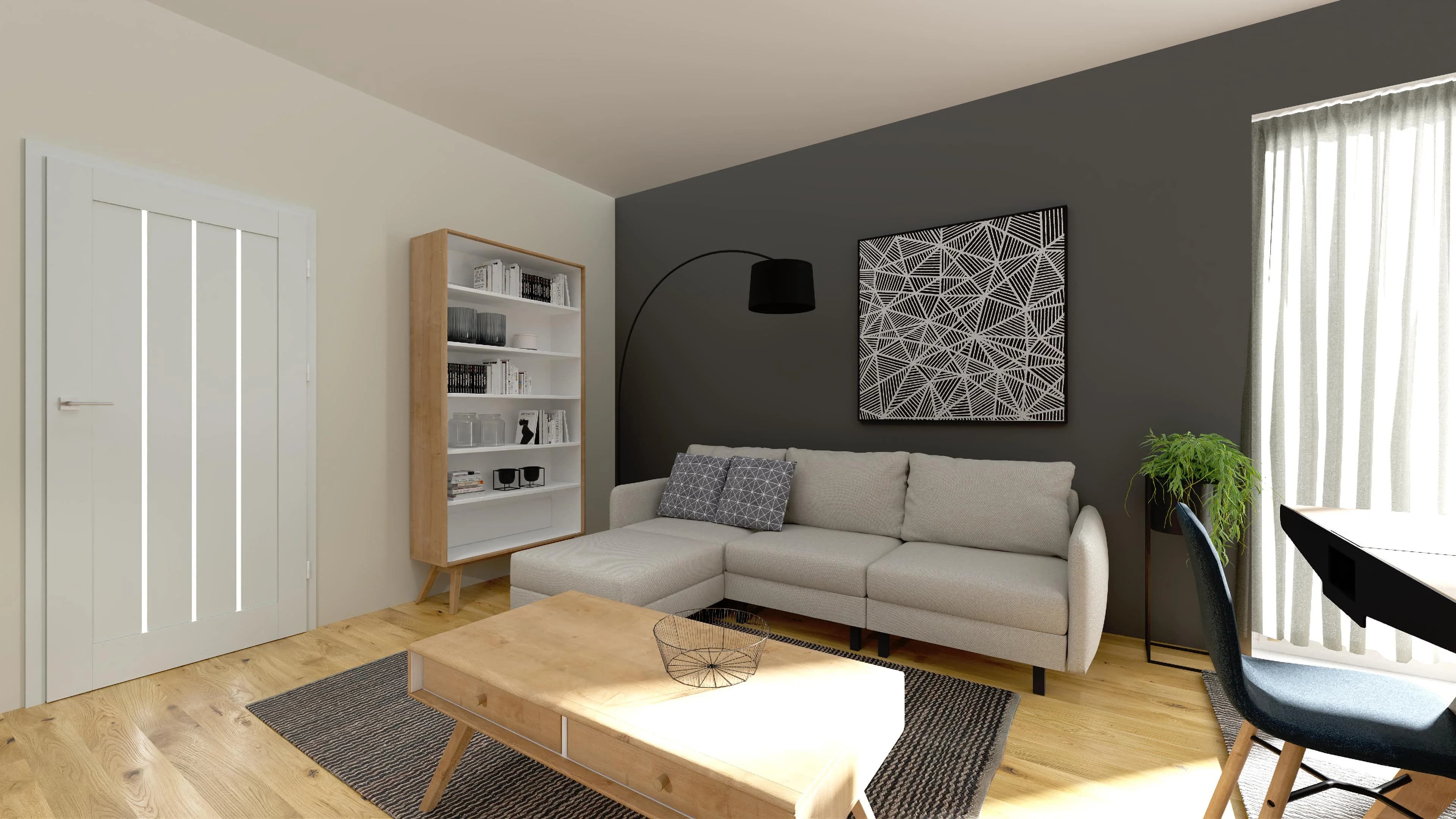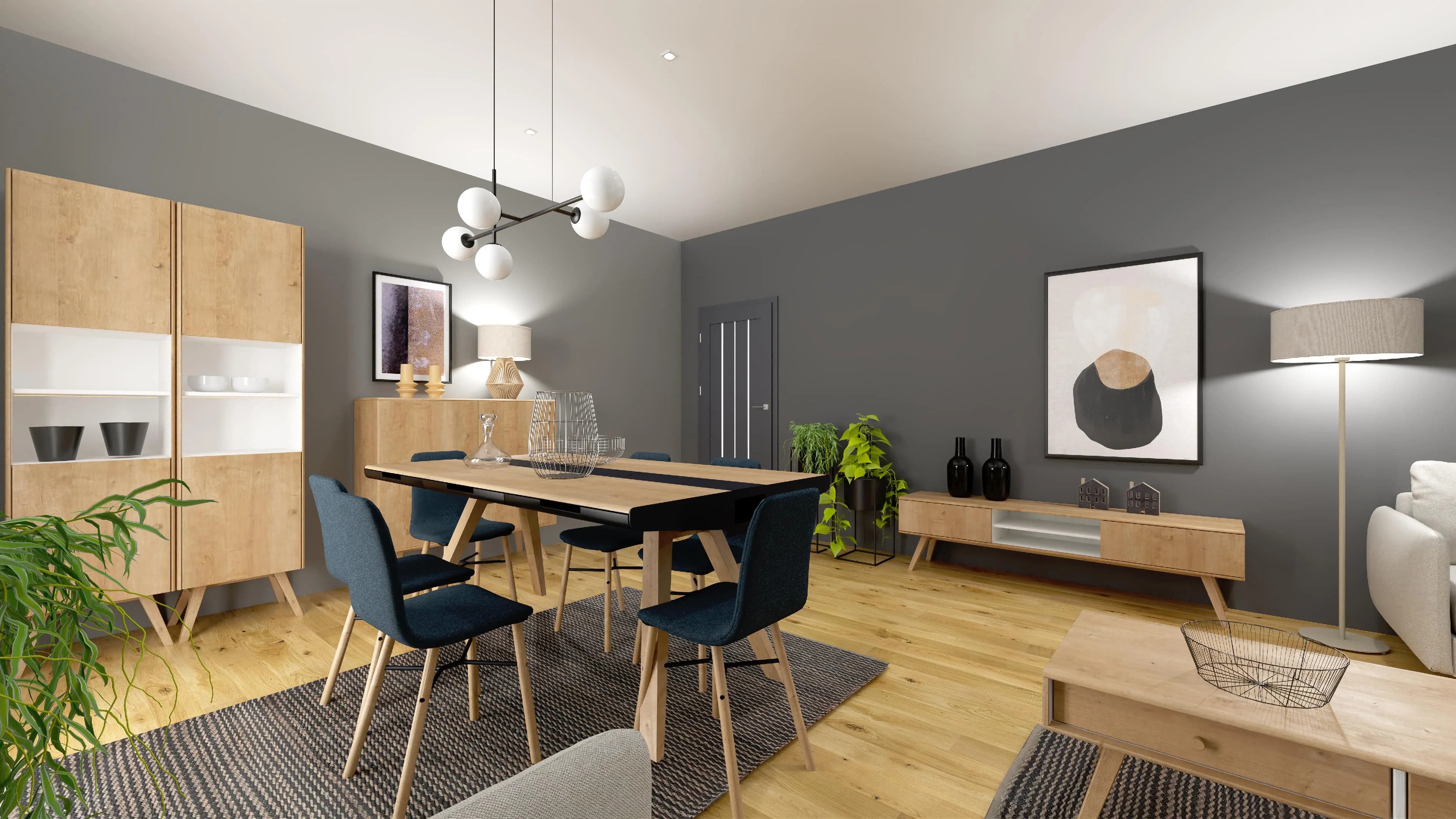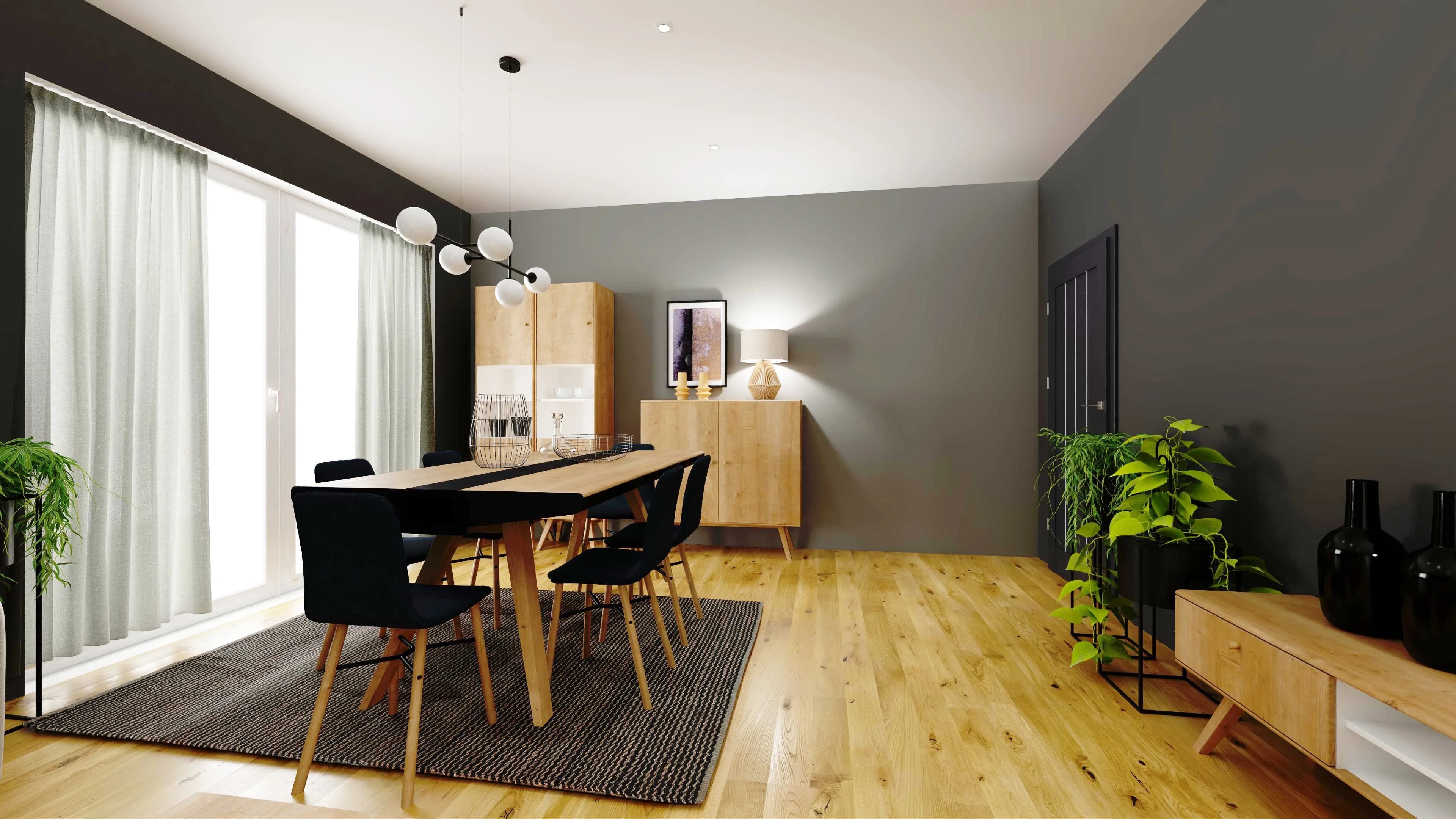 Grafitowy living room z jadalnią