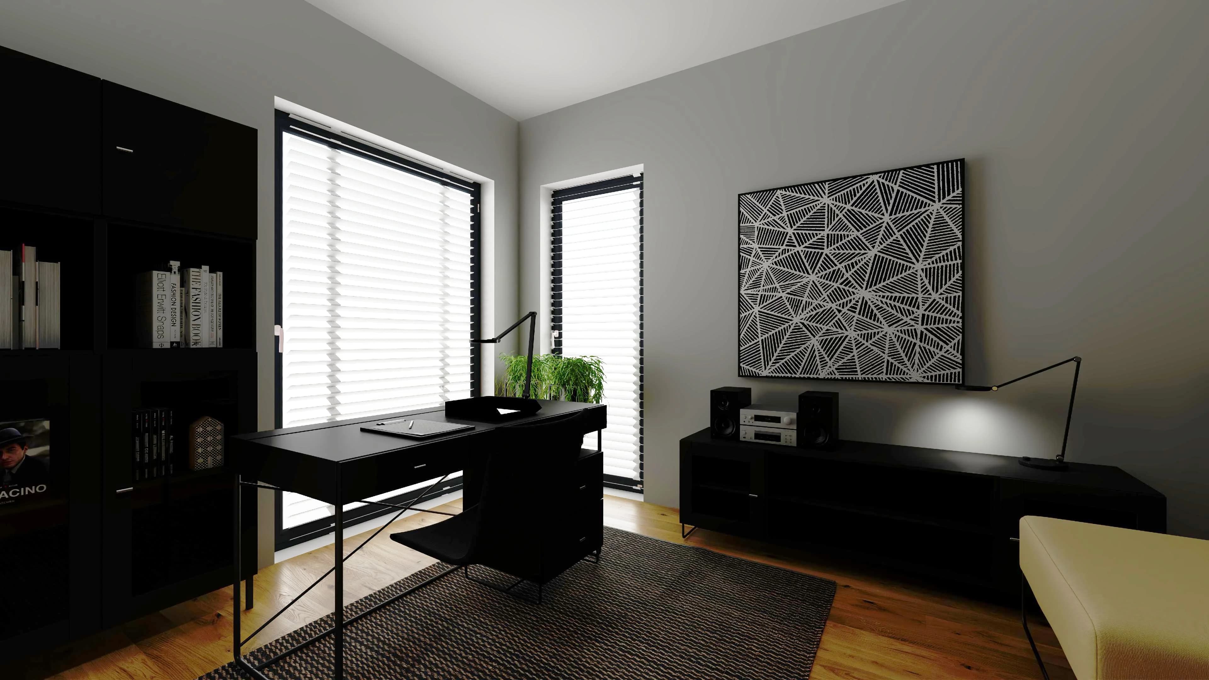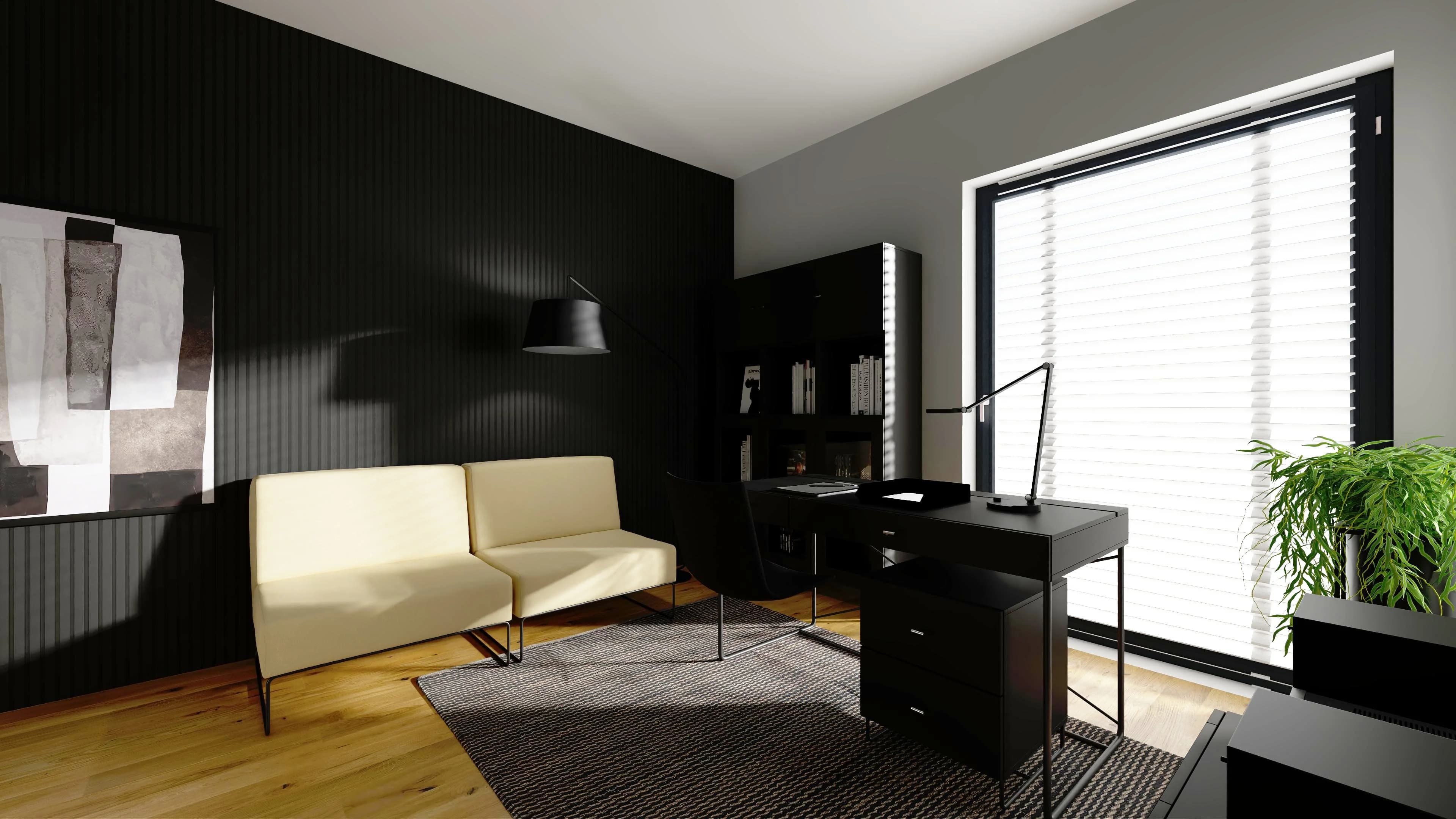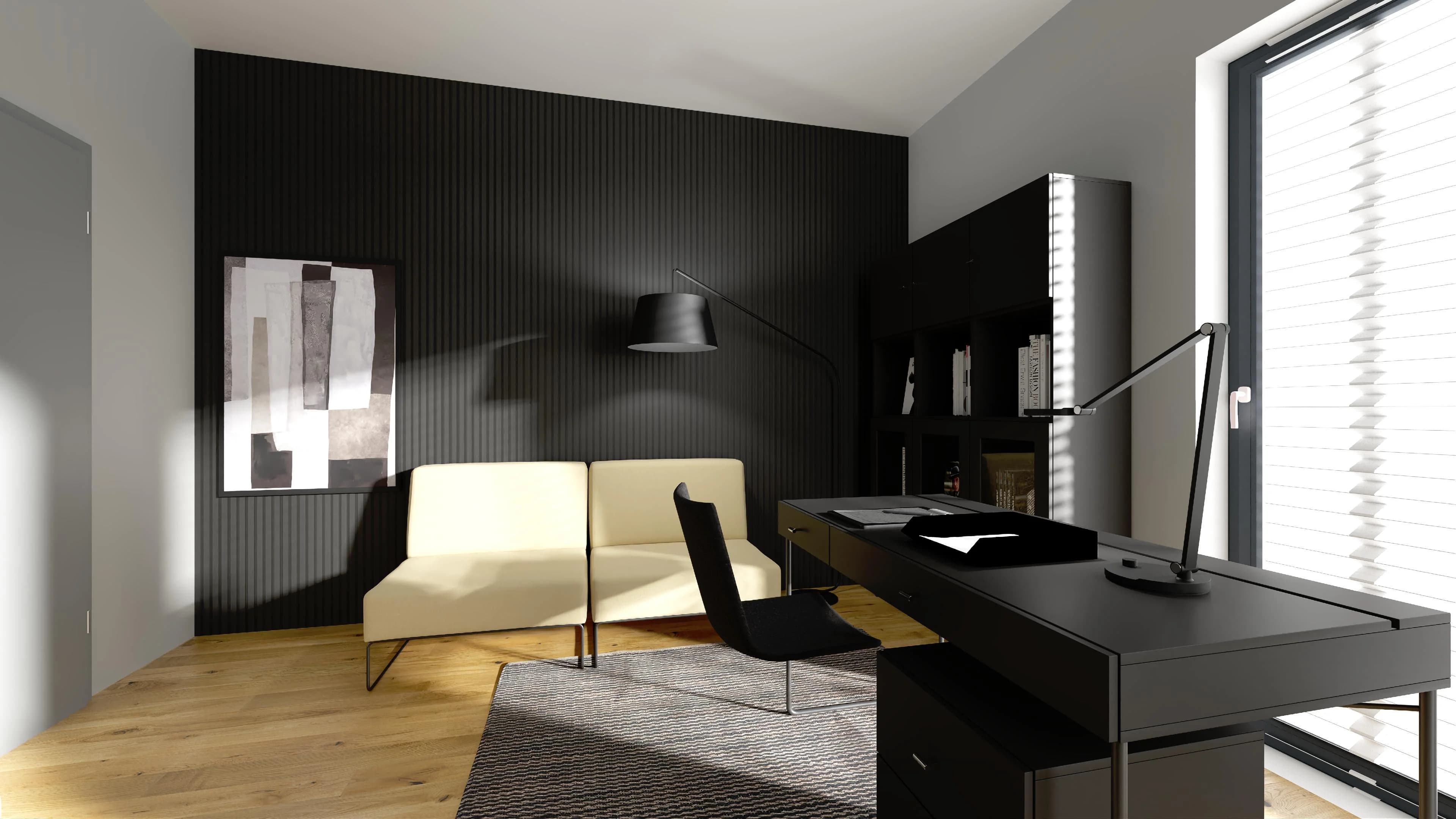 Minimalist study with black accents