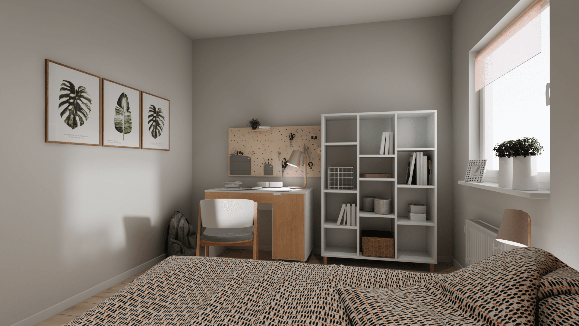 The young naturalist's small room is bright and cosy. The centrally placed bed provides a place to rest, and thanks to the handy table, all gadgets are within easy reach. Numerous storage compartments promote good organisation. At the functional desk, you can develop your passions and display your most precious treasures on the wall.