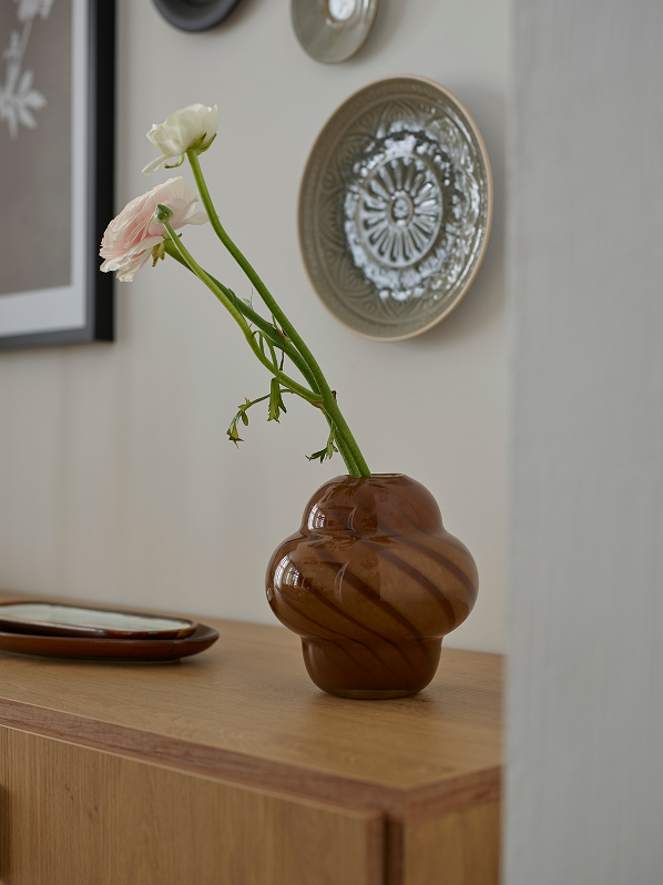 Beżowy kolor idealnie łączy się z drewnianymi dekorami – ten miks kolorystyczny wprowadzi poczucie ciepła i komfortu.
