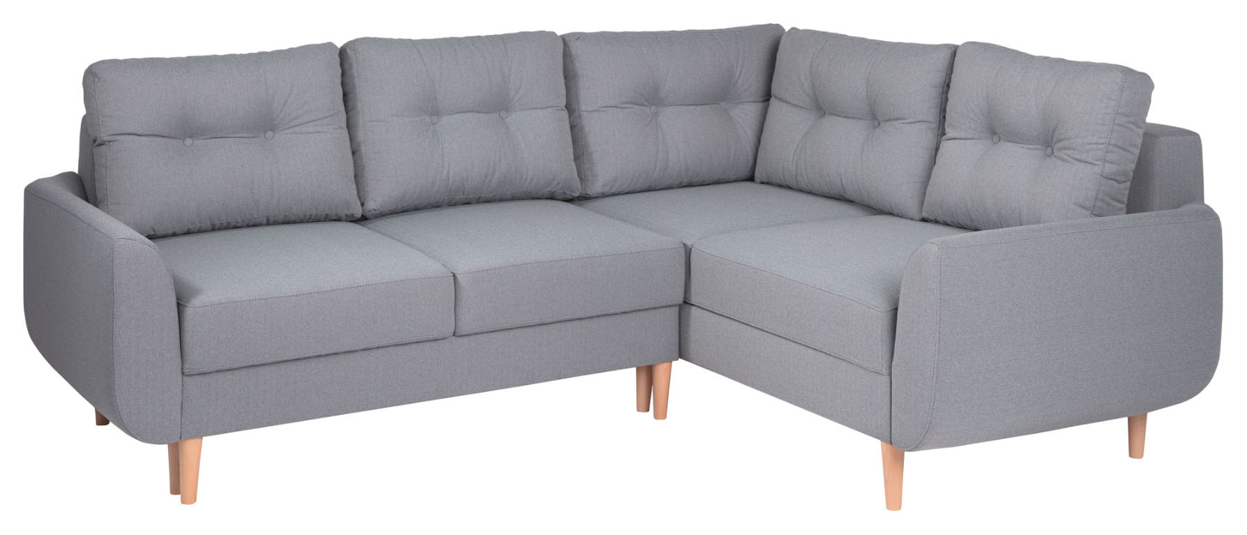 The large upholstered Cotta corner sofa with elegant cushions will work well as a lounge area and additional sleeping space. It is equipped with two spacious bedding containers. The furniture is available in right- and left-side versions. The corner sofa is manufactured to order - the buyer chooses the upholstery and the color of the legs himself.