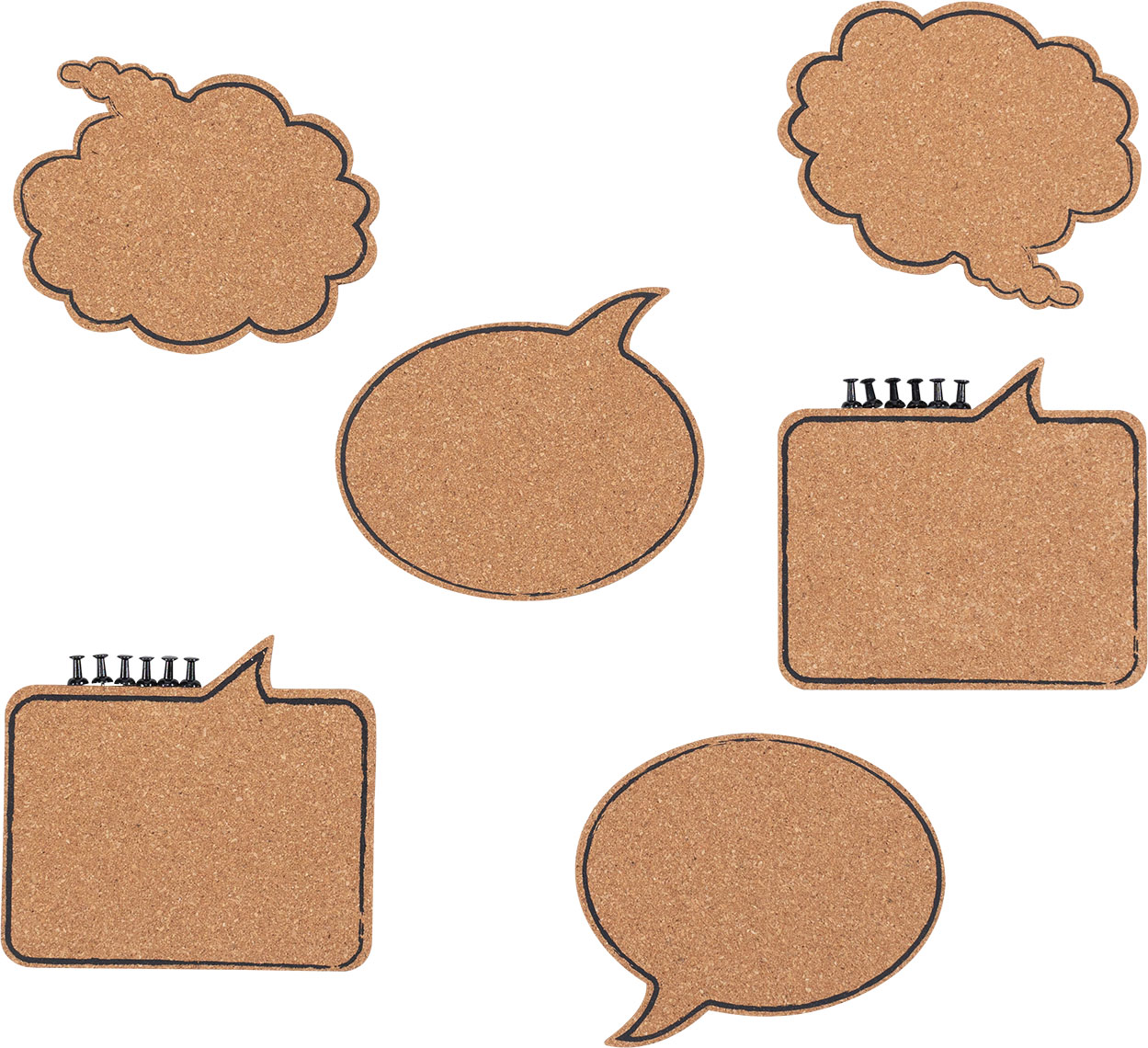 Cork boards in various shapes, set of 6 pieces. Each with dimensions of about 15X13 cm.