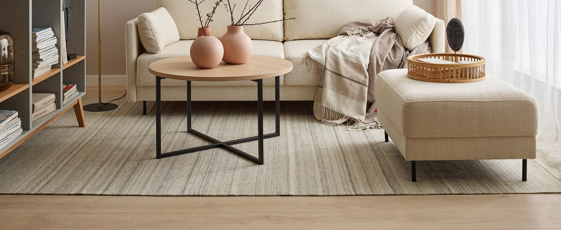 - Hand-woven carpet made of natural and fully biodegradable materials - wool with a blend of cotton.