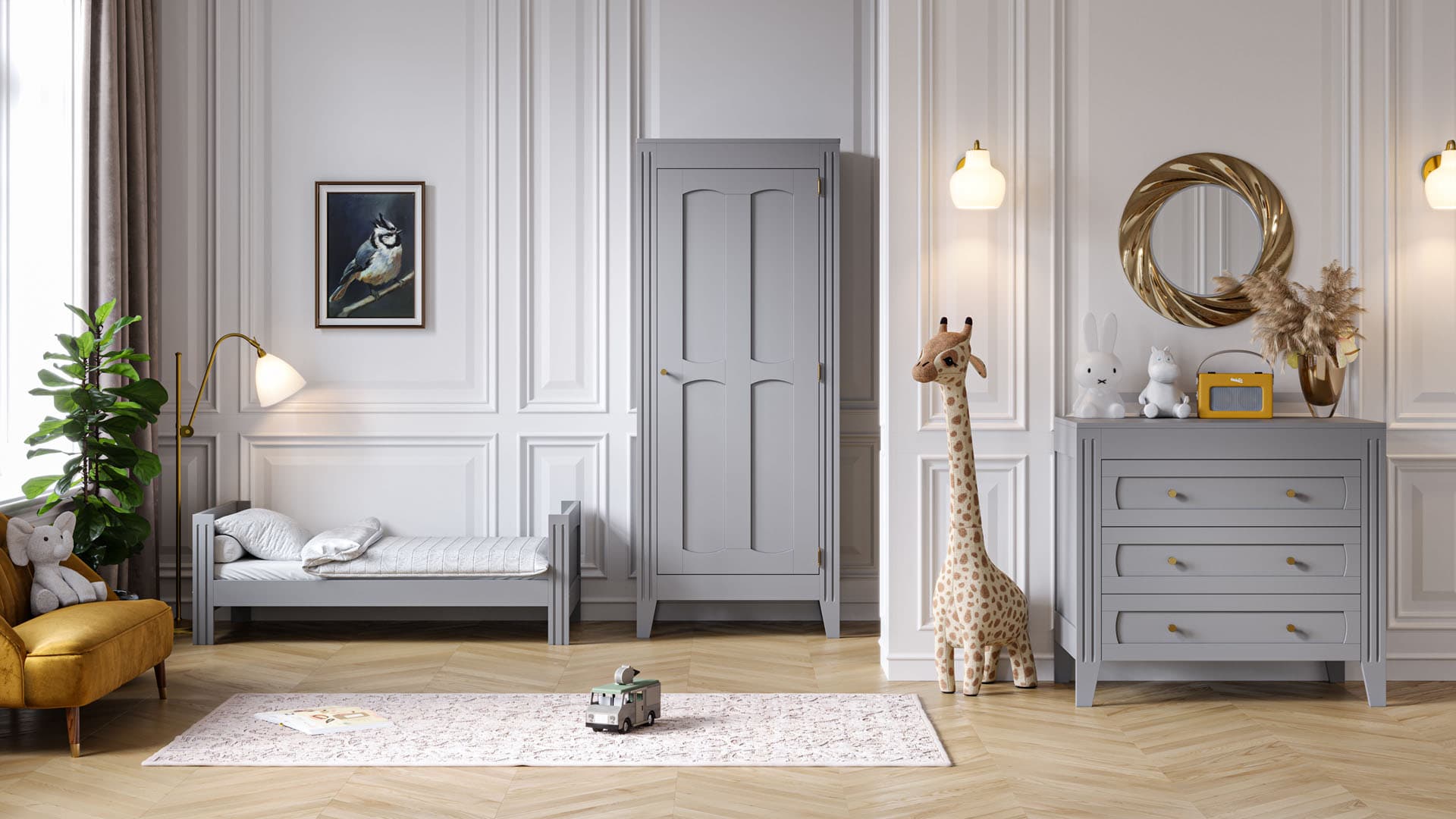 Discover our Milenne by VOX bedroom, finished with elegant moldings, designed to evoke the atmosphere of Parisian apartments.