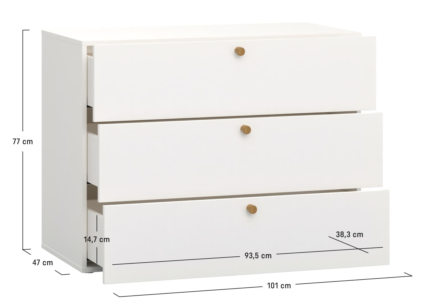 - The chest of drawers was made of high quality 16 mm thick laminated board.
