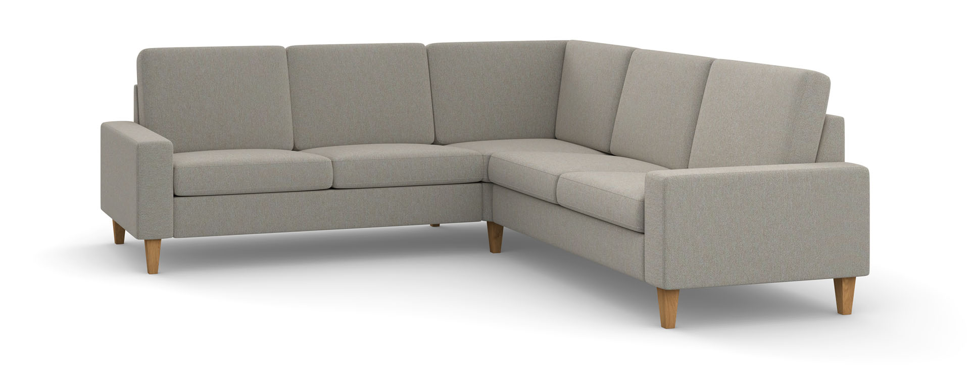 The seat of the corner is filled with springs and HR foam. The backrest cushions also contain HR foam. The furniture's frame is made of wood, plywood and furniture board. There is a choice of oak or metal legs.