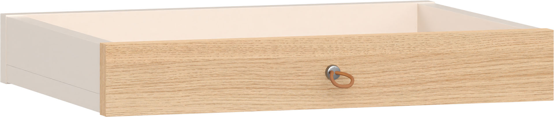 - The drawer has a two-tone finish - one of its fronts is oak, and the other is a shade of sandy beige.