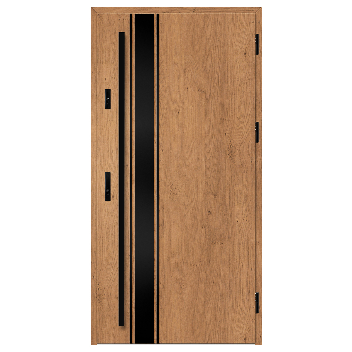 Ościeżnica stalowa, ocynkowana i oklejona w kolorze skrzydła drzwiowego, wyposażona w ciepły próg aluminiowy.