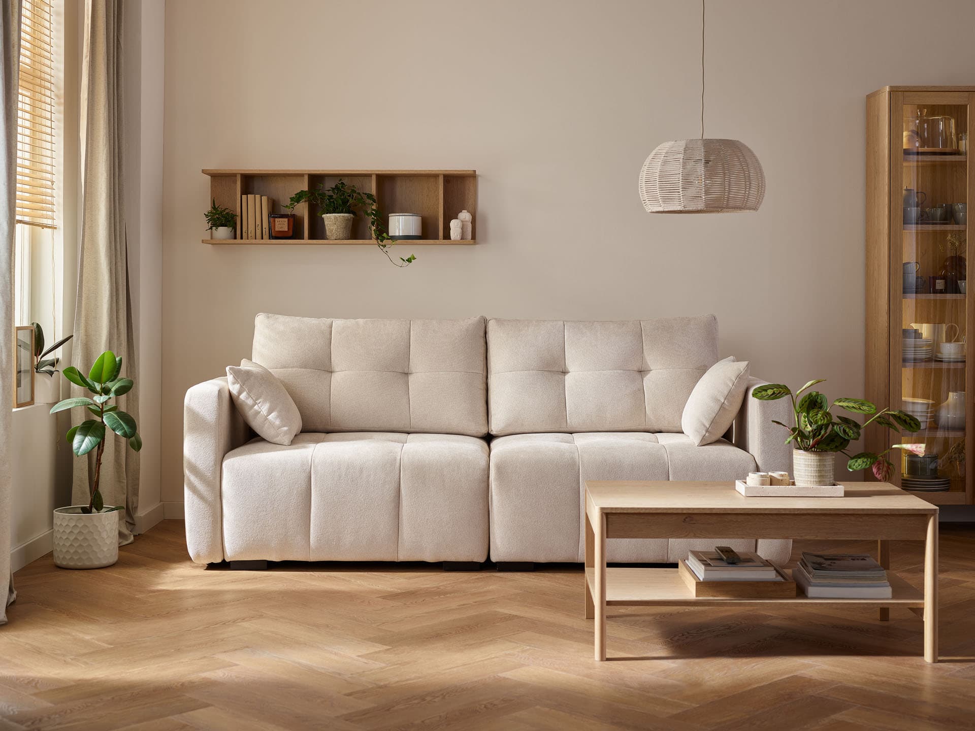 - Thanks to the fully upholstered back and bottom box, the sofa looks impeccable from any perspective and can be displayed in the focal point of the living room.