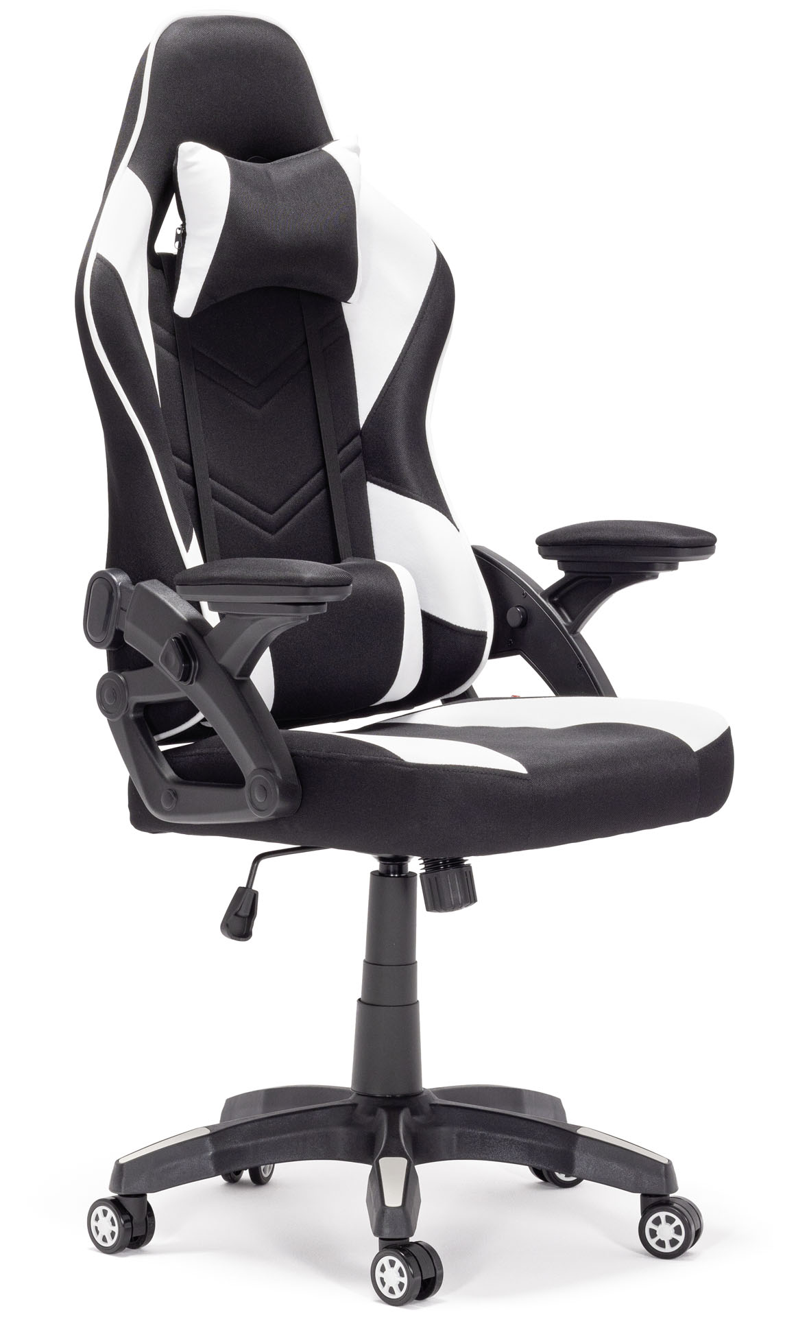 Flar is a gaming chair that combines sporty style with homely comfort. Its bucket-shaped backrest provides stable back support, and the full fabric upholstery is pleasant to the touch and airy - perfect for long sessions at your desk.
