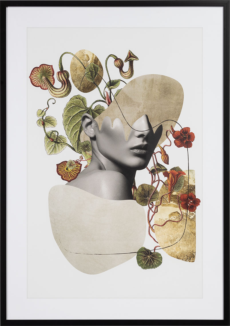 Expressive and full of character, this print is the perfect accent for interiors that like to stand out in style. The juxtaposition of a classic portrait with saturated botanicals and abstract forms creates a modern composition that attracts attention and adds artistic energy to the space. It will work great in a living room, bedroom or home office - where individuality and conscious stylistic choice count.