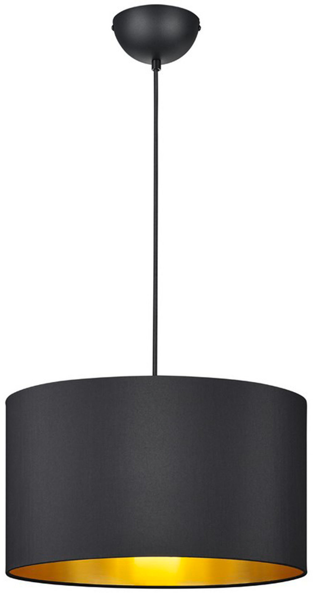 Hostel pendant lamp is a stylish luminaire that becomes the focal point of the arrangement of a modern living room, dining room or bedroom. Its design is based on a striking contrast: the exterior side of the lampshade is made of classic black fabric, while its interior is lined with shiny gold. Thanks to this combination, the emitted light acquires an exceptionally warm color, creating a luxurious and cozy atmosphere in the interior.