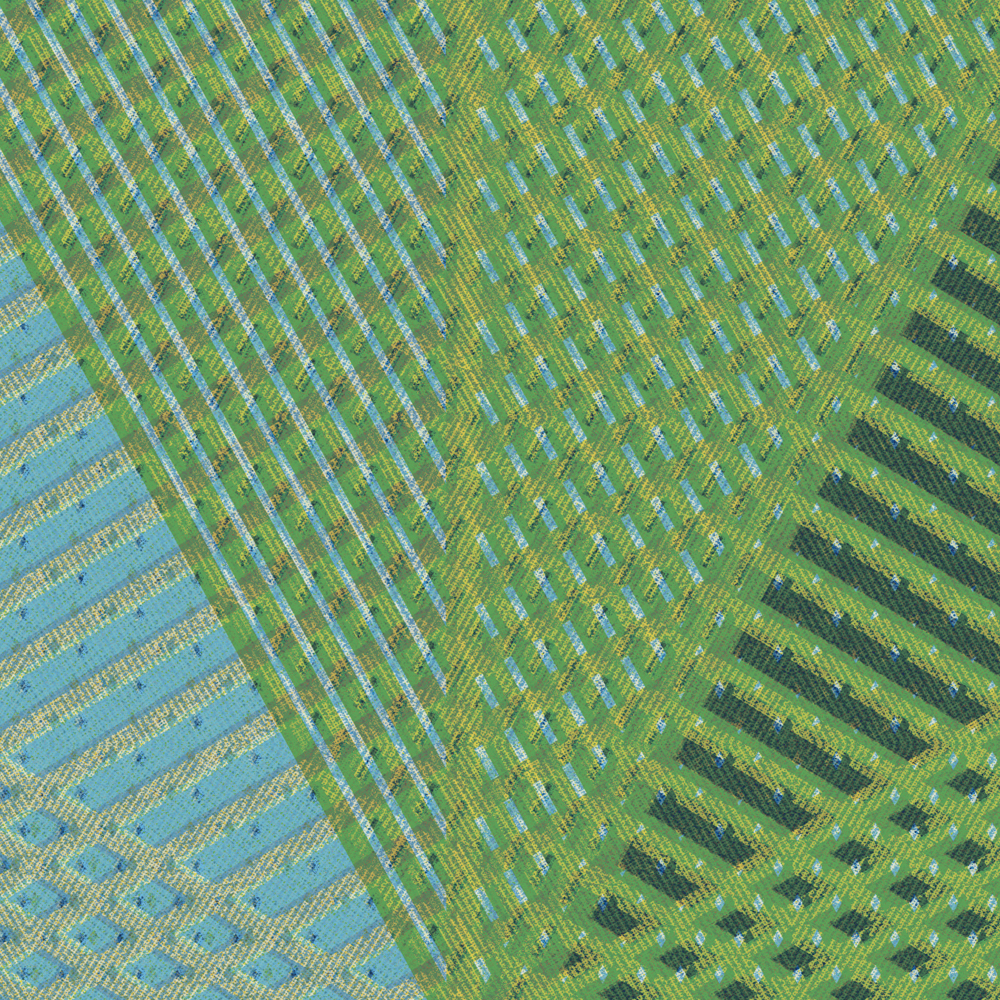 - Geometric Green panels have a tactile texture that is reminiscent of warm fabric.
