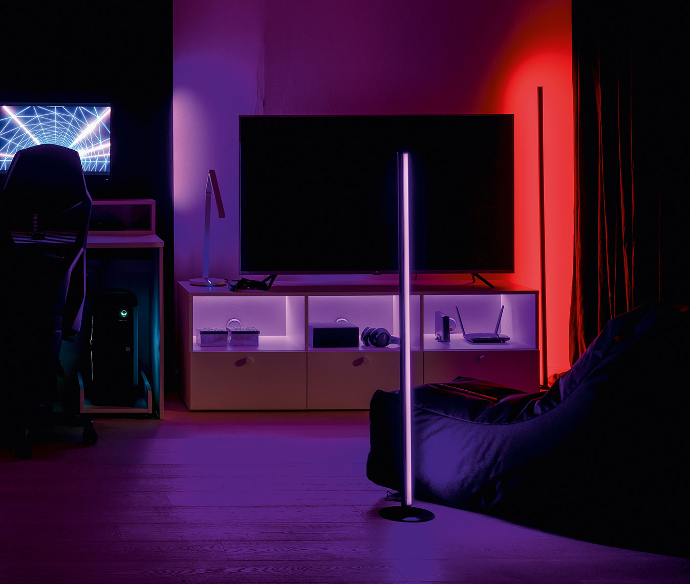Discover a whole new experience with the Tendo floor lamp, which takes movie watching and gaming to a whole new level. This state-of-the-art lamp offers a number of innovative features that allow you to immerse yourself even more deeply in a fictional world.