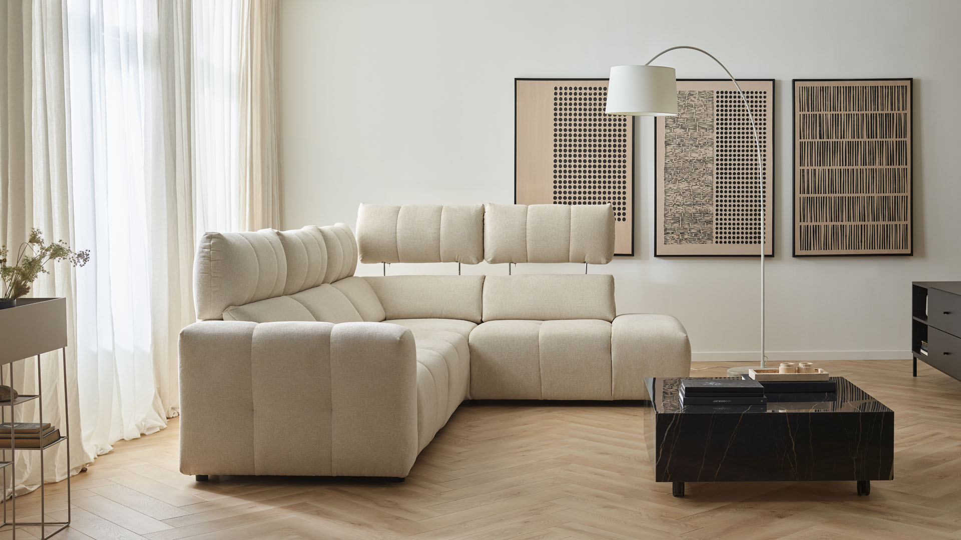 Velora corner sofa is an ideal place for daily relaxation and meetings with loved ones. Adjustable headrests and comfortable profiling of the backrests provide full support for the whole body. Thanks to the electrically extendable footrest, you can rest in the "zero gravity" position. Subtle stitching adds elegance to the furniture, and a wide selection of fabrics allows you to match it to the style of your interior.