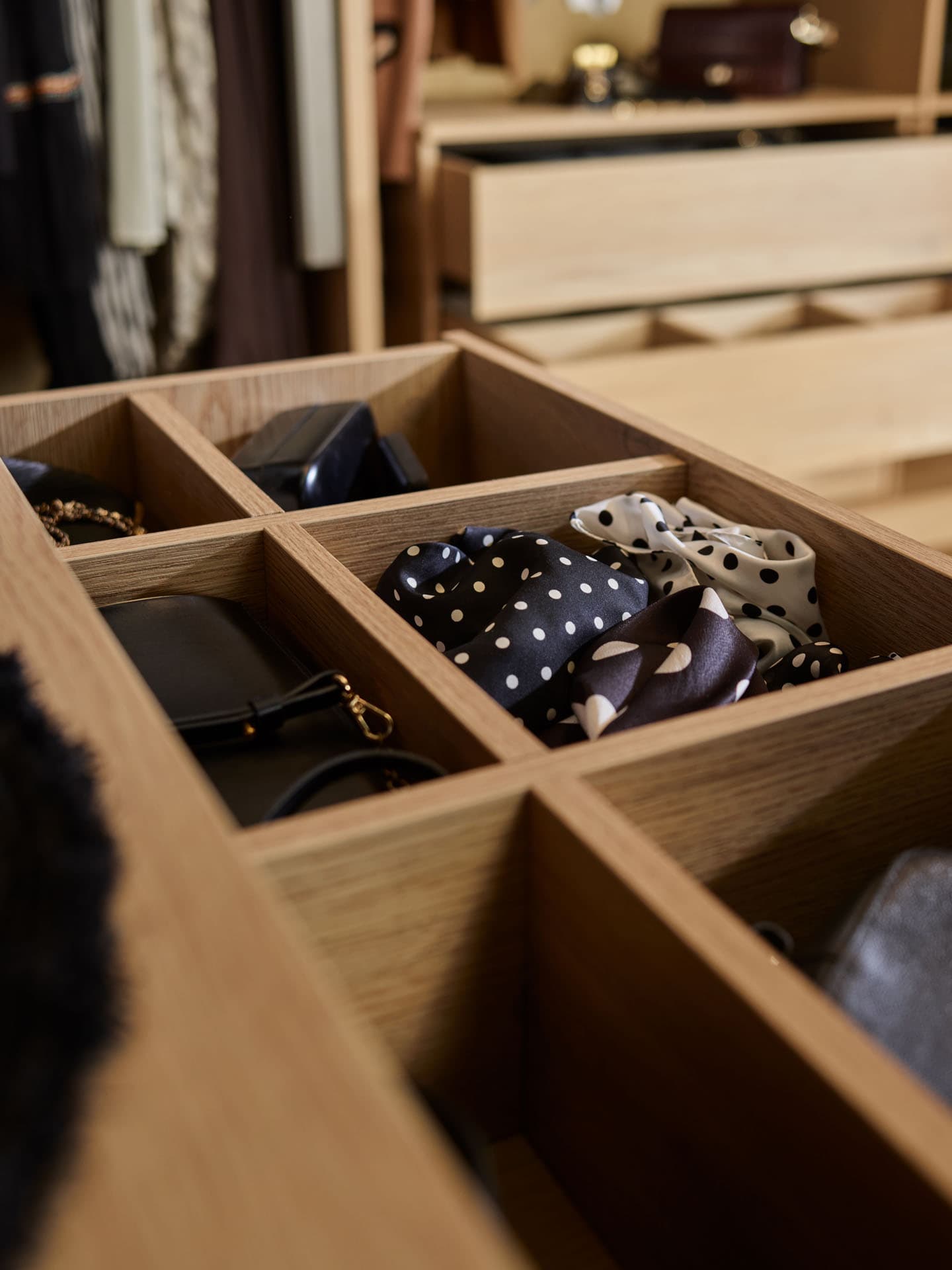 A practically organized drawer interior is the key to greater order and easier navigation. With 6 compartments, you will cleverly arrange small items and always quickly find what you need. Equip your pedestal with a practical organizer and make all your belts, scarves and small items permanently find their place.
