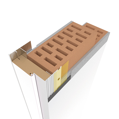 Ościeżnica po zakończonym montażu jest niewidoczna, a drzwi otwierają się na zewnątrz.
