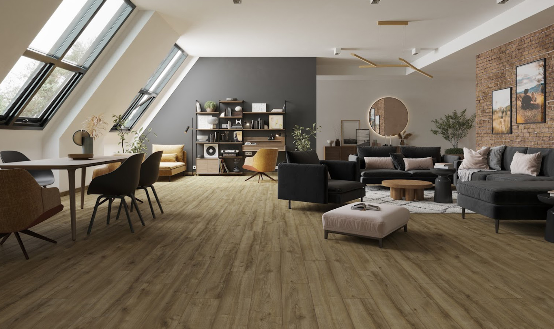 Podłoga została wyposażona w 4xV-fugę, czyli specjalnie frezowane krawędzie, które sprawiają, że panele wyglądają jak prawdziwe, drewniane deski. W połączeniu z niezwykle harmonijną stylistyką wprowadzą do aranżacji naturalny i rustykalny wymiar.