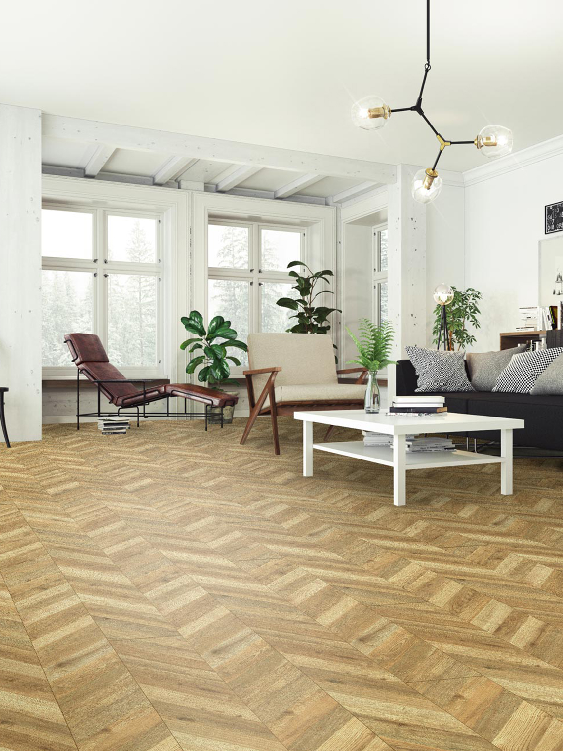 Kolor Dąb Umberto ma przyjemny, średni odcień brązu z wyraźnie zaznaczoną strukturą słojów, która nadaje podłodze naturalny, rustykalny charakter. Taki odcień doskonale komponuje się w różnych stylach wnętrz – od klasycznych, przez skandynawskie, aż po nowoczesne aranżacje.