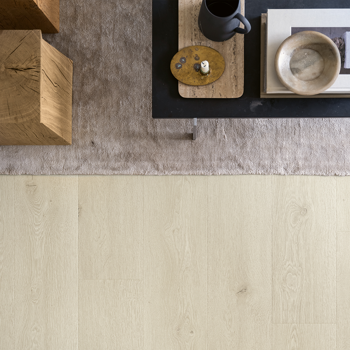 Panel podłogowy Odense z wyjątkowo długimi, szerokimi deskami i wyrazistym, 4-stronnym fazowaniem pomaga stworzyć wyrazistą i naturalną przestrzeń. Sprawia, że duże pomieszczenia zdają się być jeszcze większe, zapewniając jednocześnie poczucie spokoju w pomieszczeniach mniejszych.