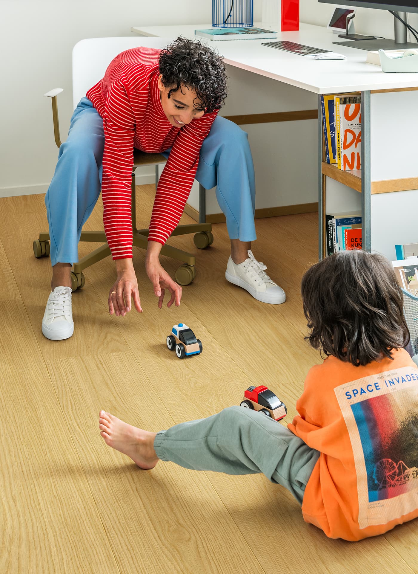 Panele podłogowe QUICK STEP Impressive Ultra Dąb Bourbonowy IMU8260 zachwycają głębią koloru i perfekcyjnym odwzorowaniem naturalnego drewna. Szlachetny, bourbonowy odcień dębu nadaje wnętrzom elegancji i ciepła, tworząc przytulną przestrzeń sprzyjającą wypoczynkowi. Podłoga doskonale wpisuje się zarówno w nowoczesne, jak i klasyczne aranżacje. Wzmocniona konstrukcja oraz wysoka klasa ścieralności gwarantują odporność na codzienne użytkowanie, nawet w miejscach o dużym natężeniu ruchu. Zaawansowana technologia HydroSeal skutecznie zabezpiecza powierzchnię przed wilgocią, dzięki czemu panele mogą być bez obaw stosowane w kuchni, jadalni czy strefie wejściowej. Czterostronna V-fuga oraz wyczuwalna struktura synchroniczna podkreślają autentyczny wygląd desek, nadając podłodze naturalny i prestiżowy charakter. Model IMU8260 jest w pełni kompatybilny z ogrzewaniem podłogowym, a jego trwałość potwierdza dożywotnia gwarancja producenta. To doskonałe rozwiązanie dla osób poszukujących połączenia ponadczasowej estetyki, niezawodnej jakości i komfortu użytkowania na lata.
