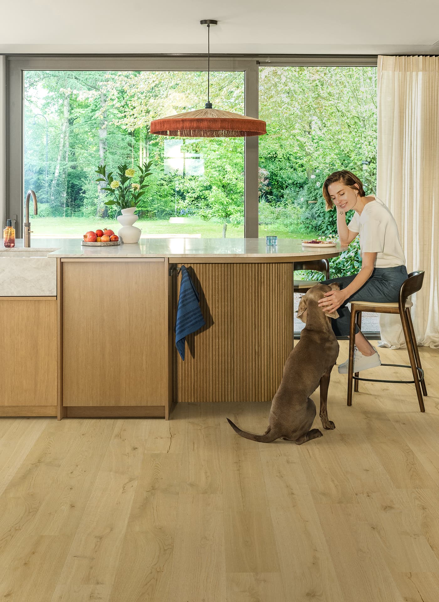 Panele podłogowe QUICK STEP Impressive Ultra Dąb Migdałowy IMU8255 to eleganckie połączenie naturalnego uroku drewna z nowoczesną funkcjonalnością. Ciepły, migdałowy odcień dębu wprowadza do wnętrz przyjemną atmosferę spokoju i przytulności, doskonale komponując się zarówno z minimalistycznym, jak i bardziej klasycznym wystrojem. Wysoka grubość oraz ponadprzeciętna odporność na ścieranie sprawiają, że panele te zachowują swój piękny wygląd nawet w intensywnie użytkowanych pomieszczeniach. Zastosowana technologia HydroSeal gwarantuje pełną wodoodporność powierzchni, dzięki czemu podłoga świetnie sprawdzi się także w kuchni, holu czy jadalni. Czterostronna V-fuga oraz realistyczna struktura wiernie odwzorowują charakter prawdziwych drewnianych desek, nadając aranżacji szlachetny i autentyczny wygląd. Panele QUICK STEP Impressive Ultra Dąb Migdałowy IMU8255 są kompatybilne z ogrzewaniem podłogowym, a ich trwałość potwierdza dożywotnia gwarancja producenta. To propozycja stworzona dla osób, które oczekują połączenia stylowego designu, komfortu użytkowania i niezawodnej jakości na wiele lat.