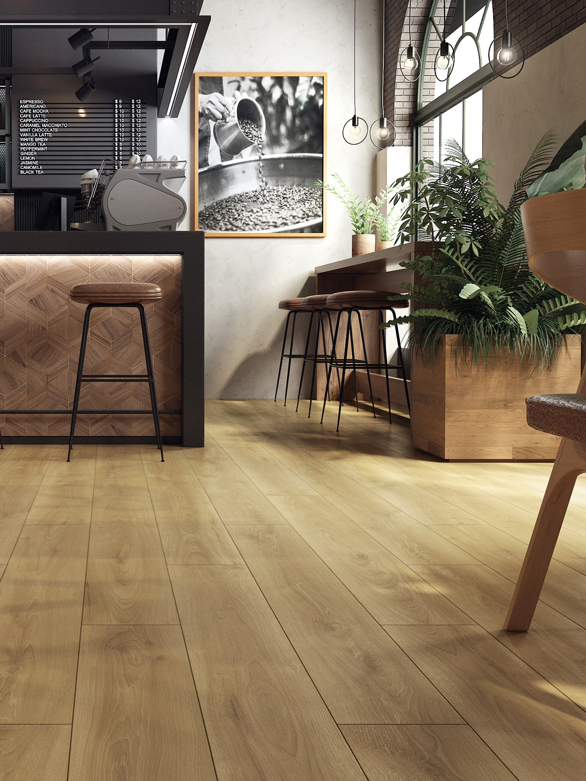 SWISS KRONO Aurum Sefora Aqua Zero Dąb Ristretto D40494 to doskonały wybór dla osób poszukujących stylowych i wytrzymałych paneli podłogowych o realistycznym, dębowym wykończeniu. Ciepły odcień i struktura inspirowana kawą, a także wyjątkowa odporność na wodę i uszkodzenia sprawiają, że panele te stanowią estetyczną i trwałą bazę dla wielu aranżacji wnętrz.