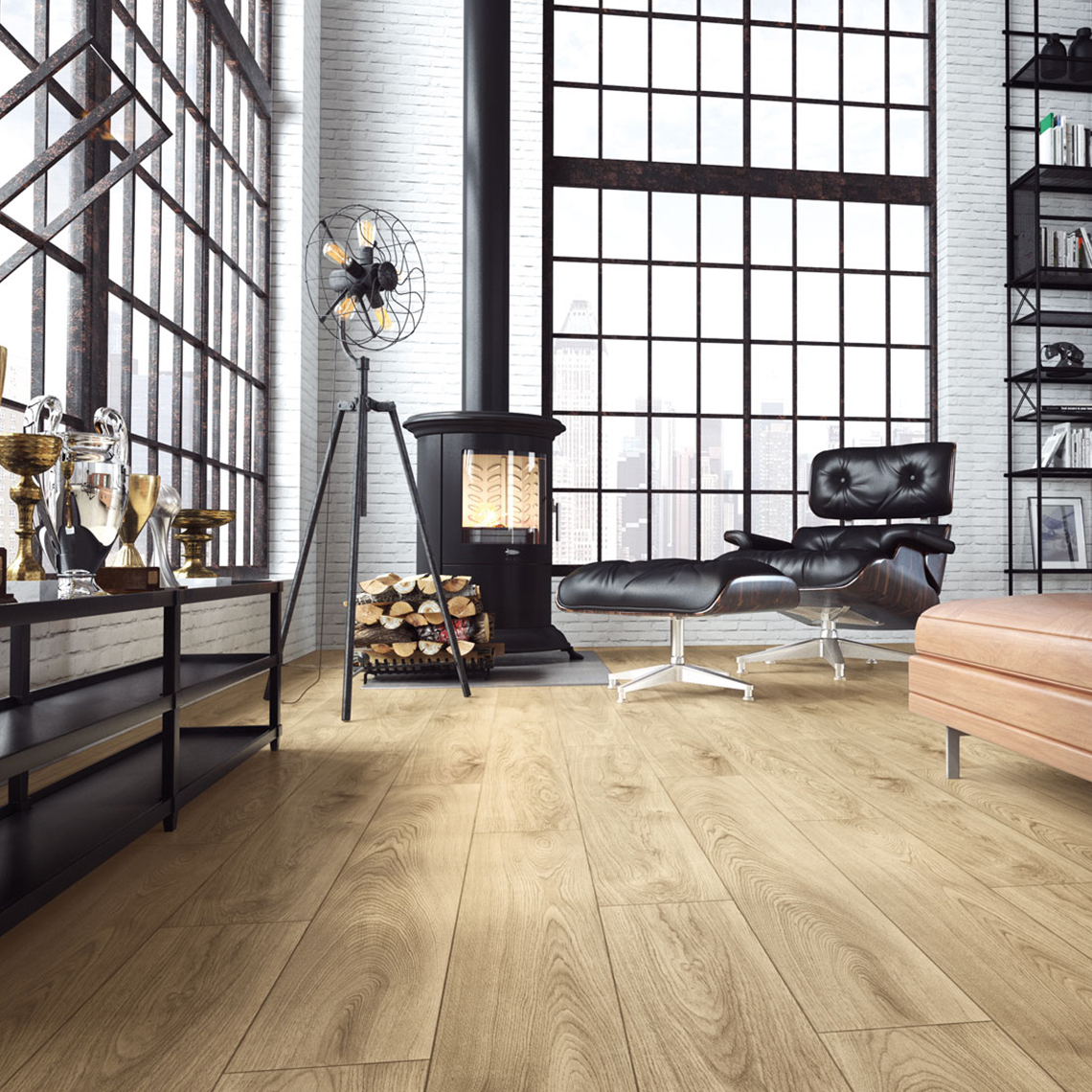 Panele podłogowe SWISS KRONO Aurum Volo Aqua Zero Dąb Eagle D4574 to wyjątkowy wybór dla osób, które pragną połączyć elegancki wygląd naturalnego drewna z nowoczesną technologią i funkcjonalnością. Dekor "Dąb Eagle" wyróżnia się ciepłym, średnim odcieniem brązu, który z delikatnym, naturalnym usłojeniem tworzy przytulną atmosferę, a jednocześnie nadaje wnętrzom elegancki i ponadczasowy charakter.